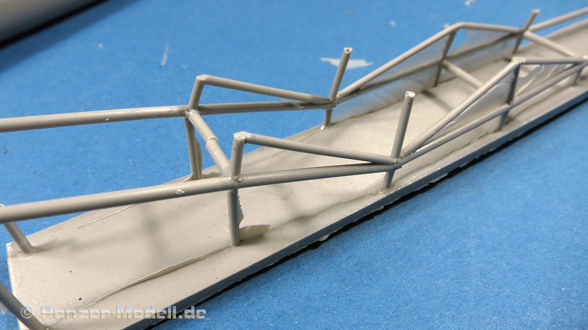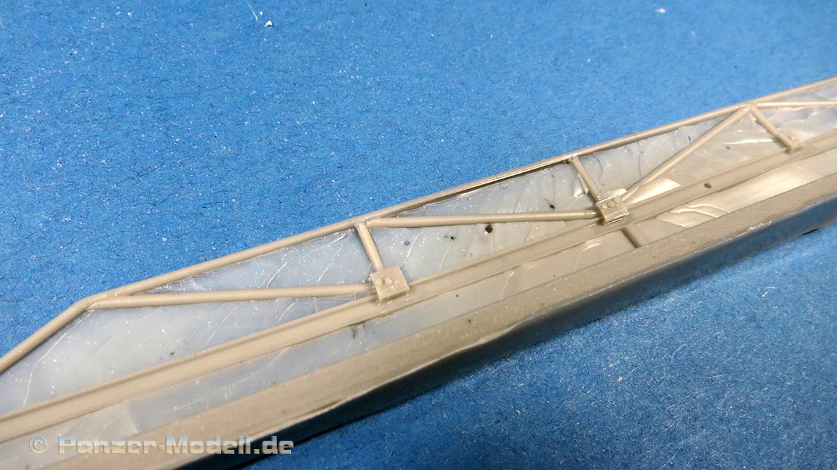 Die Resinteile sind wie gewohnt sauber und verzugsfrei gegossen, letzteres gerade bei den vielen dünnen und feinen verstrebungen ein echtes Highlight. Dafür findet sich massig Fischhaut zwischen den Vertrebungen, was absolut verständlich ist und mit dem Bastelmesser schnell entfernt ist. Leider fand sich auch ein wenig Bruch in dne Verstrebungen, aber auch die sind mit einem Klecks Sekundenkleber schnell gerichtet - so filigrane Teile aus Resin haben es eben nicht leicht. .