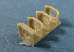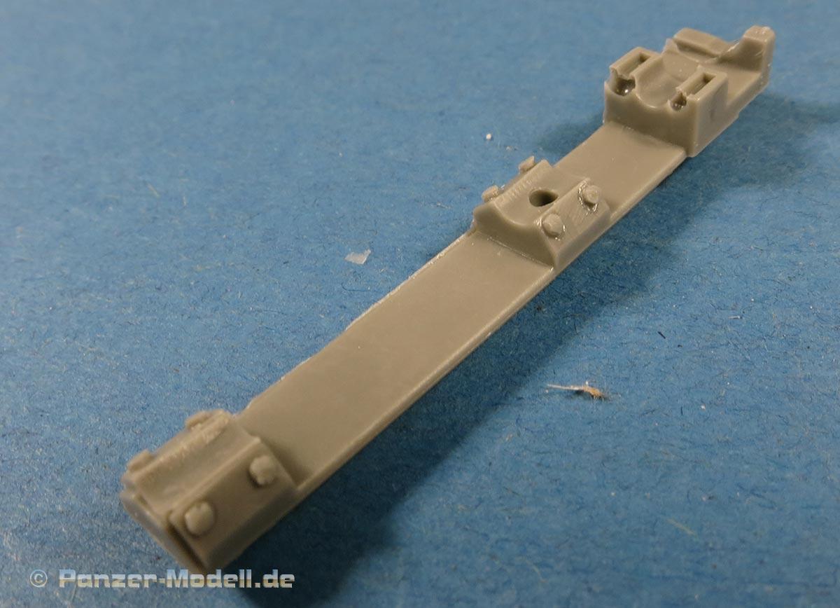 Das größte Teil aus Resin ist sicher der Rohrholm auf den das neue 7,5cm Rohr aus Metall aufgebaut wird. Das Metallrohr macht einen ganz hervorragenden Eindruck und bekommt vorn die eigenwillige Mehrkammer-Kastenbremse aufgesetzt, sie sich aus zwei Teilen zusammensetzt.