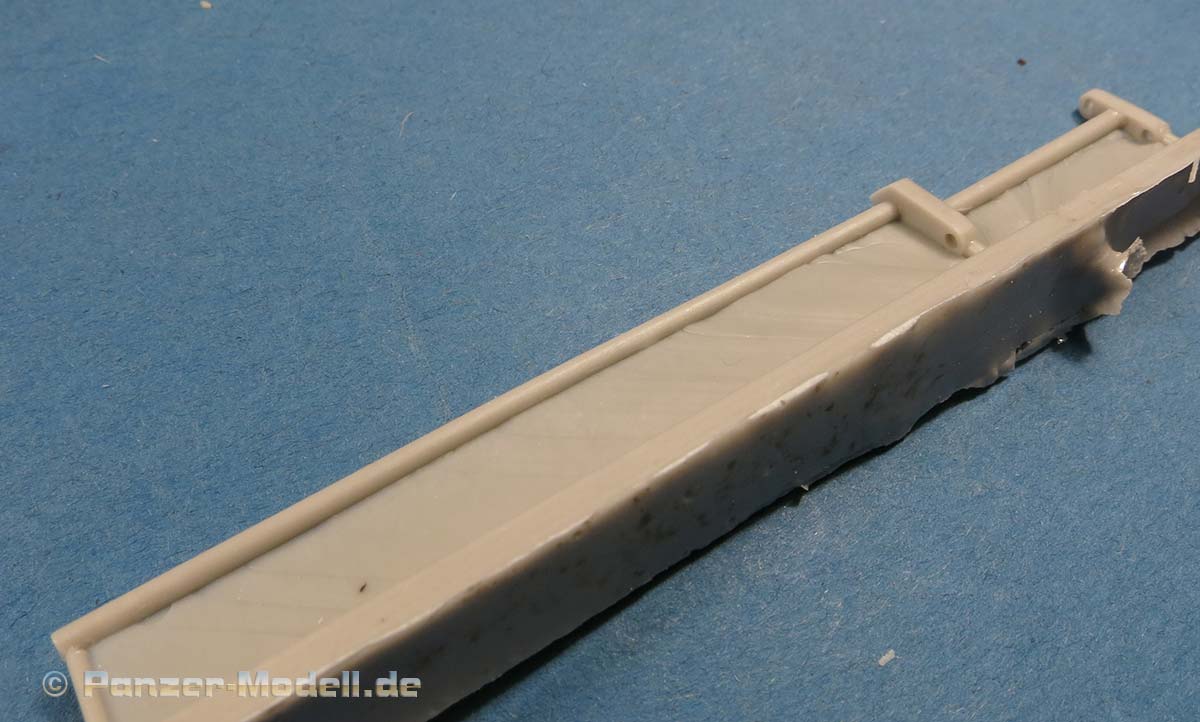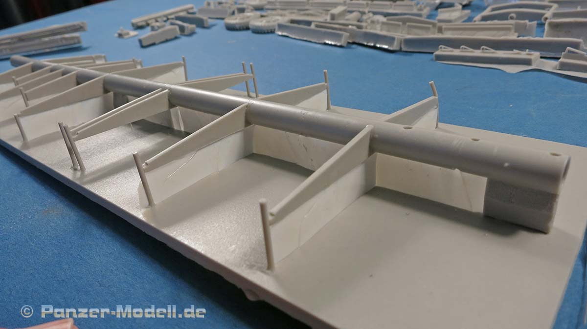 Die Unterkonstruktion der Ladefläche sieht gewaltig aus, nach dem Abtrennen des ganzflächigen Angusses und der hauchdünnen Zuführungen bleibt ein schönes, filigranes Gerippe auf dem die Ladefläche zum liegen kommt.