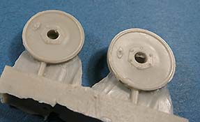 Die Räder machen einen guten Eindruck, sind sauber gegossen mit feinen Details. Die Felgenöffnungen sind von Fischhaut verschlossen und müssen noch schnell entfernt werden. Das Reifenprofil ist dauber und scharf gegossen.