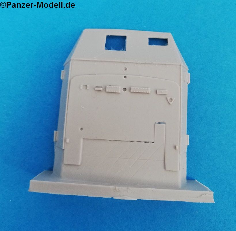 Die Typenvielfalt bei deutschen LKW macht offenbar den Herstellern von Umbausätzen eine große Freude. Der sehr rührige Berliner Kleinserienanbieter Custom-Scale nutzt diese Chance für ein eher selten fotografiertes Fahrzeug. Der Büssing NAG 4500 war als schwerer LKW bei den Wehrmachtsteilen mit fast 15.000 Fahrzeugen durchaus weit verbreitet. Eine gepanzerte Version ist aber eine ungewöhnliche Ausführung. Wie dies nun im Modell gelungen ist, werden wir uns nun anschauen. Der Bausatz wird in einem festen Karton ausgeliefert. Die Resinteile sind in mehreren Tütchen verpackt, gut geschützt durch Blisterelemente. Ein Drahtgeflecht für die Seitenwände ist im Bausatz enthalten. Eine Fahrzeugkennzeichnung dagegen nicht. Auf fünf s/w DinA4 Seiten wird durch den Zusammenbau geführt, wobei hier klar zwischen den Arbeitsschritten des Basisbausatzes und der Resinteile getrennt wird. Eine Liste der Einzelteile führt die Bauanleitung an. Das Fahrwerk wird zunächst dem AFV35270 entnommen. Die gepanzerte Kabine aus Resinteilen wird mit Details des Spritzgussmodells ergänzt. Die Ladeplattform nebst Seitenwänden und Munitionskiste ist gemäß Bauplan zu bauen. Danach sind rund um das Fahrzeug diverse Anbauteil speziell für die gepanzerte Ausführung zu montieren. Auf der Ladeplattform wird dann die gewünschte Flak entweder eine 2cm Flak 38 Vierling oder die 3,7cm Flak 37 (die nicht im Bausatz enthalten sind) - befestigt. Hierfür gibt es passende Führungsschuhe. Wie sehen nun die Bauteile aus? Die ausschließlich aus Resinteilen bestehende Fahrerkabine wird aus acht großflächigen Elementen zusammengebaut. Dabei helfen die auf der Innenseite befindlichen Führungen. An diesen Resinteilen sind sowohl innen als auch außen sehr schön die Nieten und Winkel dargestellt. Der Boden der Fahrerkabine zeigt ebenfalls feine Details. Ergänzt wird der Innenraum durch die Bauteile des Basisbausatzes z.B. Instrumententafel oder Lenkrad. Dieser erste gute Eindruck wird durch einen leichten Verzug der Kabinenteile geschmälert. Für den geübten Modellbauer ist dies jedoch kein Problem, da im heißen Wasserbad oder durch einen Fön die Teile in Form zu „wärmen“ sind. Die Angüsse der oben beschriebenen Bauteile sind einfach zu entfernen. Die Kanten müssen jedoch noch versäubert werden. Gleiches gilt für das auffällige Frontblech. Insgesamt feine Details mit leichtem Verzug. Etwas irritierend ist jedoch der starke Verzug der Seitenwände. Aber keine Sorge, dass geht wieder mit Hitze zu richten (am besten heißes Wasser), schick ist jedoch anders. Die vielen kleineren Bauteile sind alle fein gegossen und sind gut vom Anguss zu trennen. Den benötigte Basisbausatz bekommt man von AFV mit der Nummer AFV35270 und ist aktuell im Handel verfügbar. Decals sind nicht enthalten. Ein interessanter Bausatz, der jedoch durch das Richten der Bauteile für einen Anfänger schnell die Freude an Umbausätzen trüben kann. Wenn diese Hürde genommen ist, dann erhält man mit diesem Modell einen weiteren Hingucker aus dem Hause Custom-Scale.