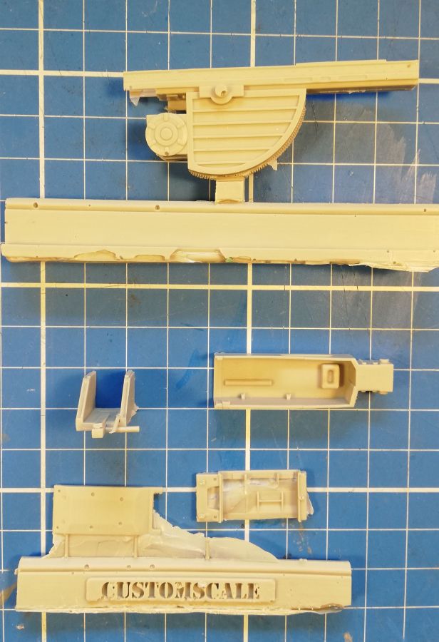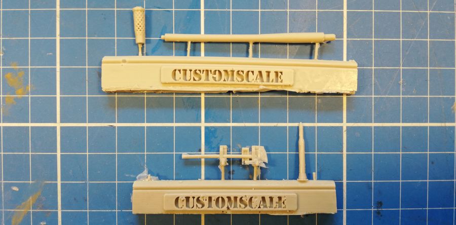 Der Kleinserienhersteller Customscale überrascht uns immer wieder mit seltenen bzw. wenig bekannten Fahrzeugen oder Geschützen. Und so ist es wenig überraschend, dass dann doch überraschend ein Flugabwehrgeschütz präsentiert wird, zu dem Google überraschend wenig zum Lesen bietet. In einem US-Geheimdienstbericht sind deutsche Dokumente aufgeführt, die das Gerät 214 beschreiben. Die mittlere Flak, die den Bereich der Kaliber zwischen 3,7cm und 8,8cm abdeckt, sollte mit dem Kaliber 5cm bzw. 5,5cm erweitert werden. Die 5cm Flak 41 erwies sich dabei als vielversprechend und kam auch mit nennenswerten Stückzahlen zum Einsatz. Für die Prototypen mit Kaliber 5,5cm verlief hingegen ab Mitte 1944 die Entwicklung kriegsbedingt eher zäh. Die Luftwaffe erprobte unterdessen erfolgreich die 5cm MK 214 a. Anhand dieser Erfahrung wurde die Waffe auch als Flugabwehrgeschütz in Betracht gezogen und weisungsgemäß als Schubkastenlösung fertig gemacht, wobei dafür noch die verfügbaren Lafetten des Geräts 58 vorgesehen waren. Der Bausatz wird in einem relativ großen, stabilen Karton ausgeliefert. Darin befinden sich drei Kunststofftüten mit den Resinteilen. Diese sind gut geschützt mit Verpackungschips. Im Karton ist zudem ein kompletter Bausatz des 5,5cm Flak Gerätes 58 der recht jungen Firma 16.02 enthalten. Die zweiseitige Bauanleitung s/w gibt einen kurzen geschichtlichen Hintergrund zum Geschütz, ein Übersicht der Bauteile und auf drei Bildern die bereits montierte Waffe bzw. die beiden Seiten des fertigen Modells. Zunächst zum Resinbausatz, der die eigentliche Waffe MK 214 darstellt: Die Einzelteile sind recht detailliert, konturiert gegossen und frei von Verzug. An dem filigranen Innenleben der Waffe war in meinem Bausatz teils noch Fischhaut vorhanden. Es ist kein Problem dieses hauchdünne Überschussmaterial zu entfernen. Für alle Bauteile gilt, dass die schmalen Stege zum Grußträger ebenfalls einfach zu beseitigen sind. Die Schwenkeinrichtung für die Höhe liegt als kompaktes Bauteil bei und nimmt später die Waffe auf. Der Anguss liegt etwas ungünstig am Zahnrad, was bei montiertem Geschütz nicht mehr sichtbar ist. Die feinen Nieten, die Versteifungsstreben usw. dieses Bauteils sind klar definiert. Das Waffengehäuse hat dünne Seitenwände mit feinen Nieten. Die gesamte Mechanik der Waffenabfeuerung ist sehr schön wiedergegeben. Auch der Waffendeckel hat unterwärts angedeutete Hebel, so dass insgesamt das Gerät offen dargestellt werden kann (oder besser: sollte?!). Die Mechanik des Rohrrückholers ist ebenfalls ohne Makel. Gleiches gilt für das konisch zulaufende Rohr und die Mündungsbremse mit seiner fein angedeuteten Durchbohrung. Der Basisbausatz 5,5cm Flak Gerät 58 der Firma 16.02: Die Firma 16.02 ist ein Ableger von Customscale und deckt künftig die Sparte der Spritzgussmodelle ab. Der Karton ist ansprechend mit einem farbigen Deckelbild gestaltet und zeigt auf der Rückseite drei Farbvorschläge für die 5,5cm Flak Gerät 58. Im stabilen Klappkarton sind 5 Spritzlinge, ein Aluminiumrohr, ein Ätzteilbogen und die Bauanleitung enthalten. Alle Teile sind eigens in einer transparenten Folie verpackt. Die Bauanleitung führt auf 11 Seiten zum kompletten Modell der 5,5cm Flak wir haben hier jedoch die 5cm Flak MK 214 vorliegen und benötigen aus dem Spritzgussmodell ausschließlich die Teile der Lafette. Die Bauteile für die Unterlafette haben feine Angüsse, die später nicht mehr sichtbar sind. Die Wahl zwischen Transport- oder Feuerstellung ist auf fünf Bildern beschrieben. Hierbei werden drei Arme der Niveauregulierung behandelt. Diese kleinen Bauteile lassen sich wohl gut vom Gussast trennen und haben feine Details. Die Montage dieser Arme bestehend aus Zylinder, Kolbenstange, zwei Führungsstangen und Fuß wird sicherlich ein besonderes Thema eines Bauberichtes sein so zumindest der erste Eindruck. Die Hilfestellung zur Positionierung der Teile mittels Pfeilen ist dabei sehr sinnvoll. Die Baustufen 3 bis 6 behandeln die 5,5cm Flak. Die Teile vermitteln alle eine schöne Detaillierung was an dieser Stelle fehlt, ist ein Hinweis der für die 5cm Flak MK 214 benötigten Bauteile. Hier ist die Verbindung zur Bauleitung des Resinbausatzes herzustellen. Ein Blick auf die sicher zu verwendenden Teile wie beispielsweise die Seitenlafetten, Laufsteg, Optik oder Höhenrichteinrichtung überzeugt durch die gute Qualität. Dies mache ich an der feinen Ausführung der Stellräder oder Nieten fest. Die Anzeigen zur Höhen- und Seitenrichtung, die Sitze und Handräder im Bauschritt 7 + 8 machen auch Freude. Die letzten Schritte behandeln die von Nieten überzogenen Segmente des Schutzschildes. Die Angüsse sind kein Thema und von Auswerfermarken keine Spur. Ergänzt werden die Schildteile durch Halterungen, Stangen und durch die Pedale der Abfeuerung. Das Aluminiumrohr und den Ätzteilbogen habe ich nicht unterschlagen, sondern diese werden schlicht nicht für die MK 214 benötigt. Im Bauabschnitt 10 wird genau ein Teil beschrieben. Hier ist eine Kleinigkeit anzumerken, da das Bauteil jener Ring ist, der die Seitendrehung der Flak führt. Darüber sollte sich der Modellbauer früher Gedanken machen. Wie dies gelöst werden kann, ist dem Baubericht via folgendem Link zu entnehmen: http://www.panzer-modell.de/berichte/55mm_flak/55mm_flak.php Stichwort Nachhaltigkeit: Customscale verpackt die Artikel mit Biochips aus Mais. Fazit: Das Team um Customscale traut sich was. Und recherchiert offenbar unermüdlich. Denn sonst treten solche Spezialitäten nicht zu Tage. Die Qualität ist gut, die Detaillierung bestens. Ein gedrehtes Rohr wäre schön. Irgendein Haar muss doch zu finden sein. Im Ernst. Ein beeindruckendes Flugabwehrgeschütz, das sicherlich einen ganz besonderen Platz in der Sammlung erhält. Meine Empfehlung. Keine Überraschung. Vielen Dank an Michael Baldeweg für das Muster