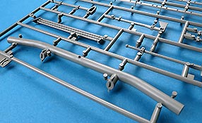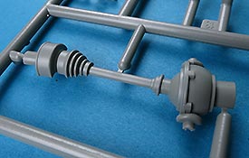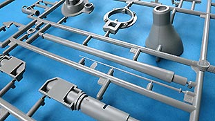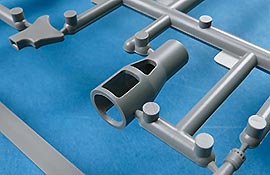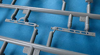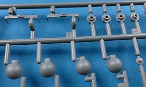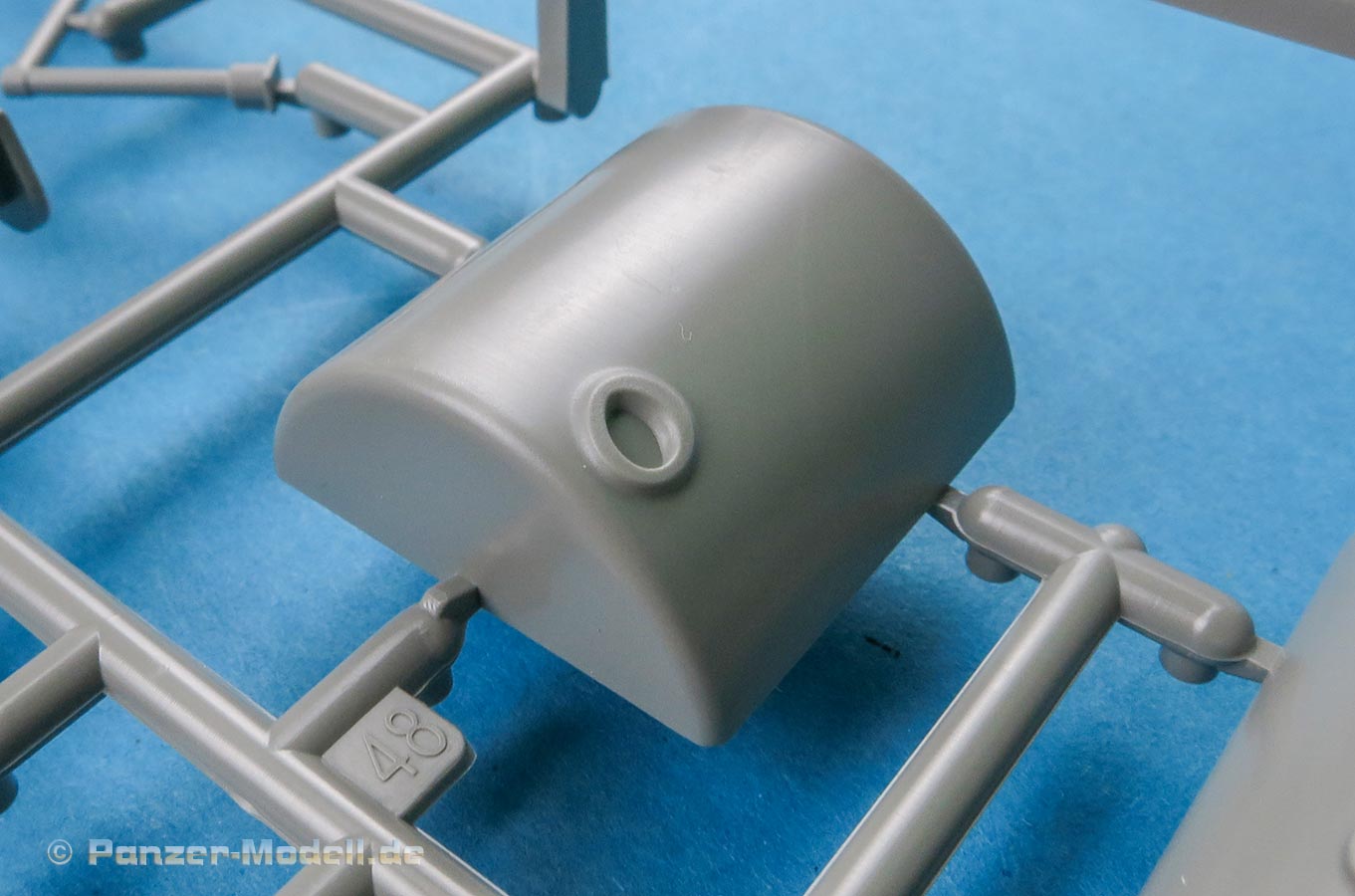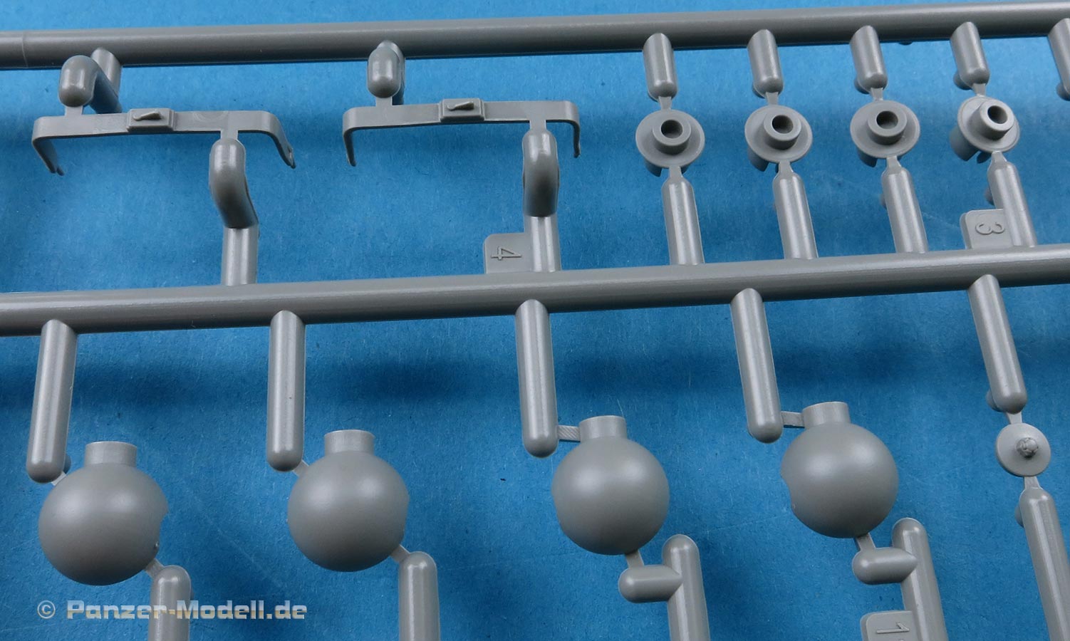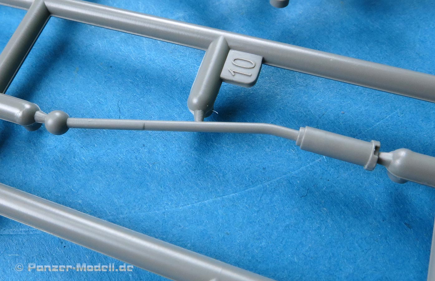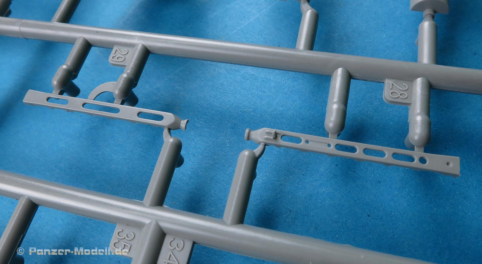 Die Gußqualität der Bauteile ist sehr gut. Alles ist sehr sauber gespritzt und frei von Sinkstellen. Versatz, Fischhäute und Grat sind ebenfalls nicht zu finden. Hier und da einige Auswerfermarken, die aber im nicht sichtbaren Bereich verschwinden. Angüsse sind ebenfalls modellbaufreundlich umgesetzt. Der Spritzguß ist auf der Höhe der Zeit.