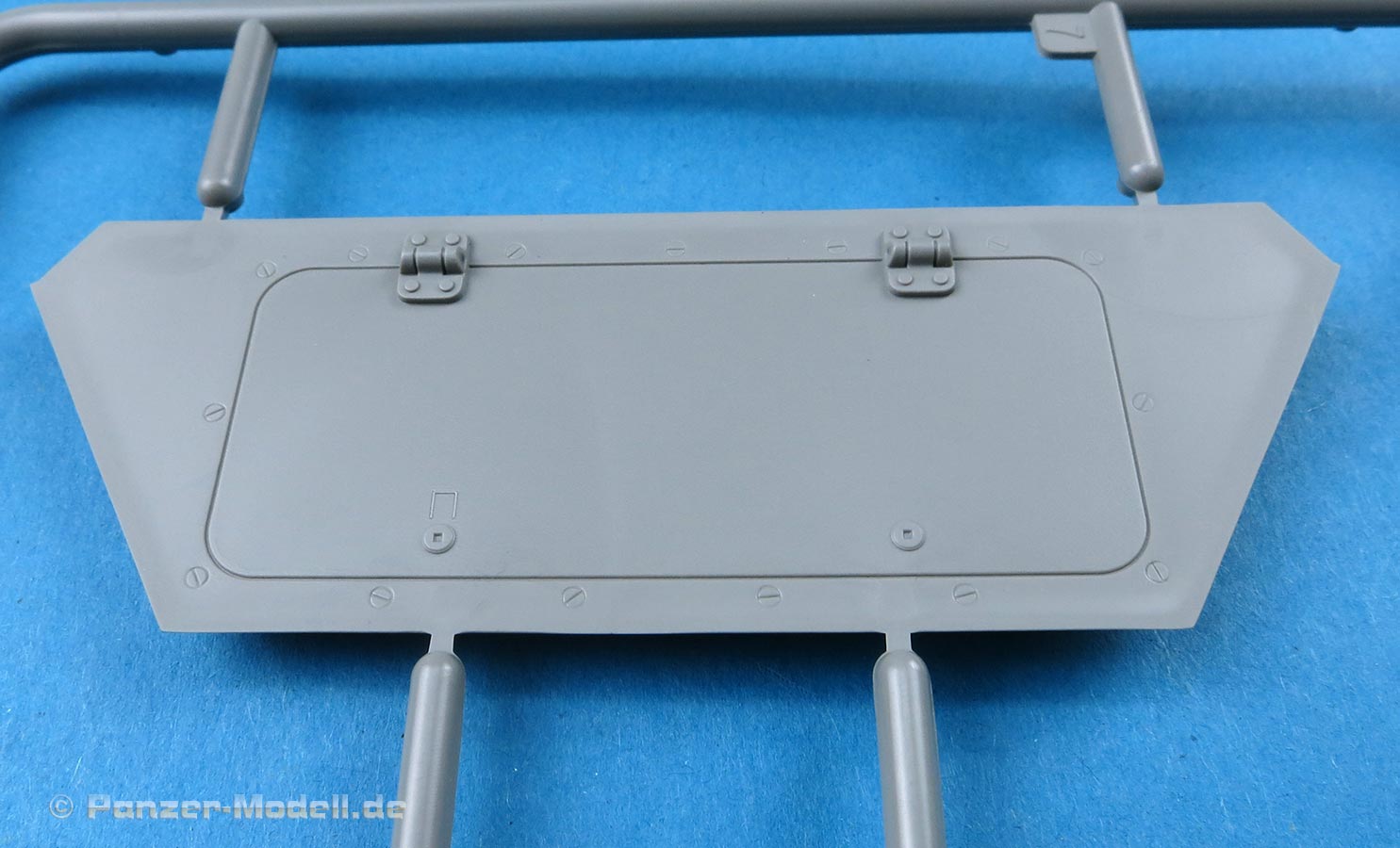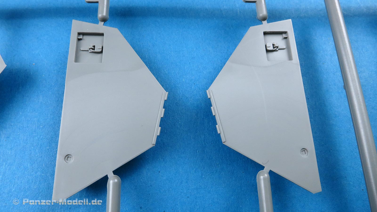 Ãnliches gilt für die seitlichen Staukästen. Das Basisteil is je Seite einteilig und die Staukisten sind alles hohl und offen, sodass man die Klappen jeweils offen oder geschlossen anbauen kann. Im geschlossenen Zustand haben die Klappen bereits ein Vorhängeschloss mit angespritzt, was eine nette Addition ist, wobei ich mir nicht sicher in ob das im Original im Einsatz wirklich wirklich so genutzt wurde.