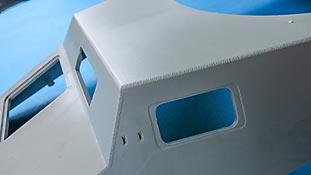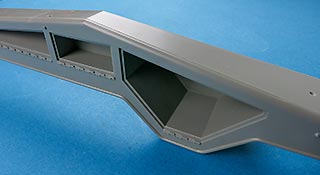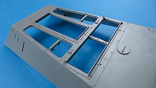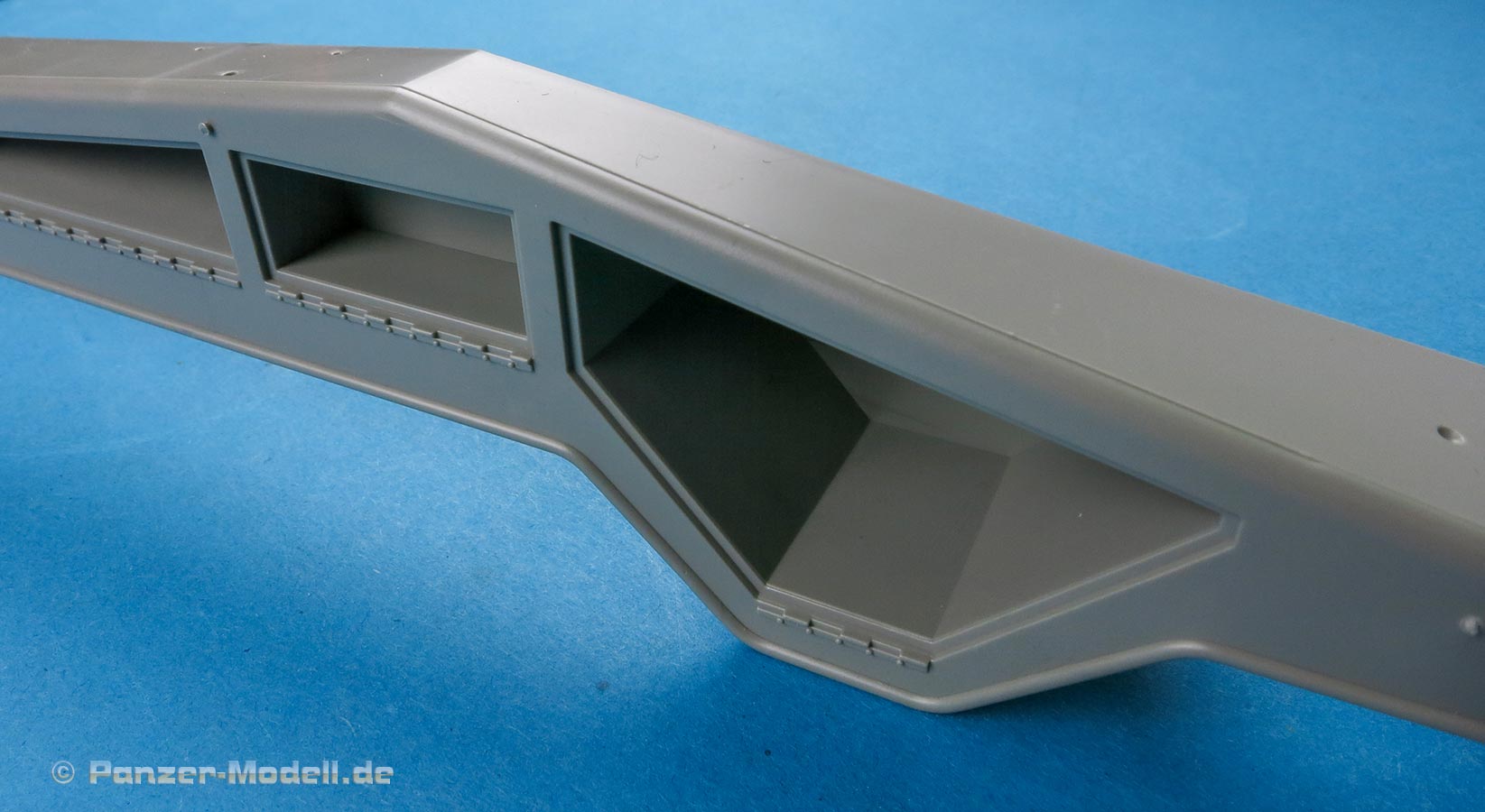 Die Öffnungen zum Motorraum sind offen, sodass man die Luken offen oder geschlossen bauen kann und die Lüfterlamellen sind einzeln einzubauen.
