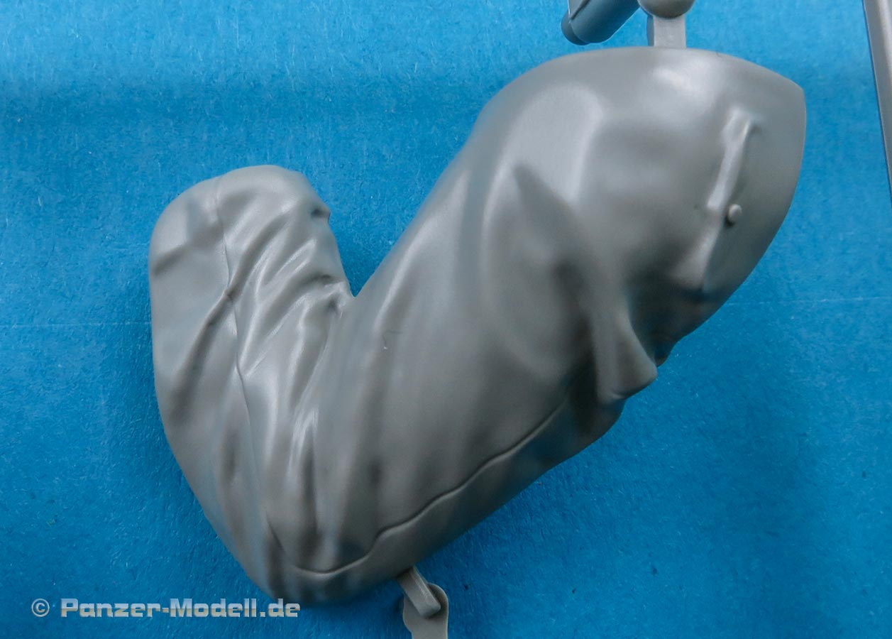 Das Gesicht ist wirklich sehr ansprechend mit einem leicht offen lächelndem Mund mit sichtbarer Zahnreihe, Nase mit offenen Nasenlöchern und Ohren, die auch als solche bezeichnet werden können - jetzt liegt es nur noch am Modellbauer dieses Gesicht entsprechend gut zu bemalen.