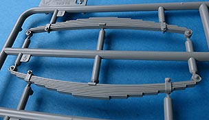 Die Vorderachse baut sich aus relativ vielen Einzelteilen zusammen, ist dafür aber komplett mit beweglicher Lenkung baubar.
