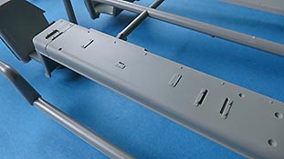Die Unterwanne ist erfreulicherweise einteilig, wird aber mit einer Vielzahl Kleinteile versehen. Schwingarme und Drehstäbe setzen sich aus zwei Teilen zusammen und können federnd in die Unterwanne eingebaut werden.
