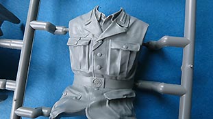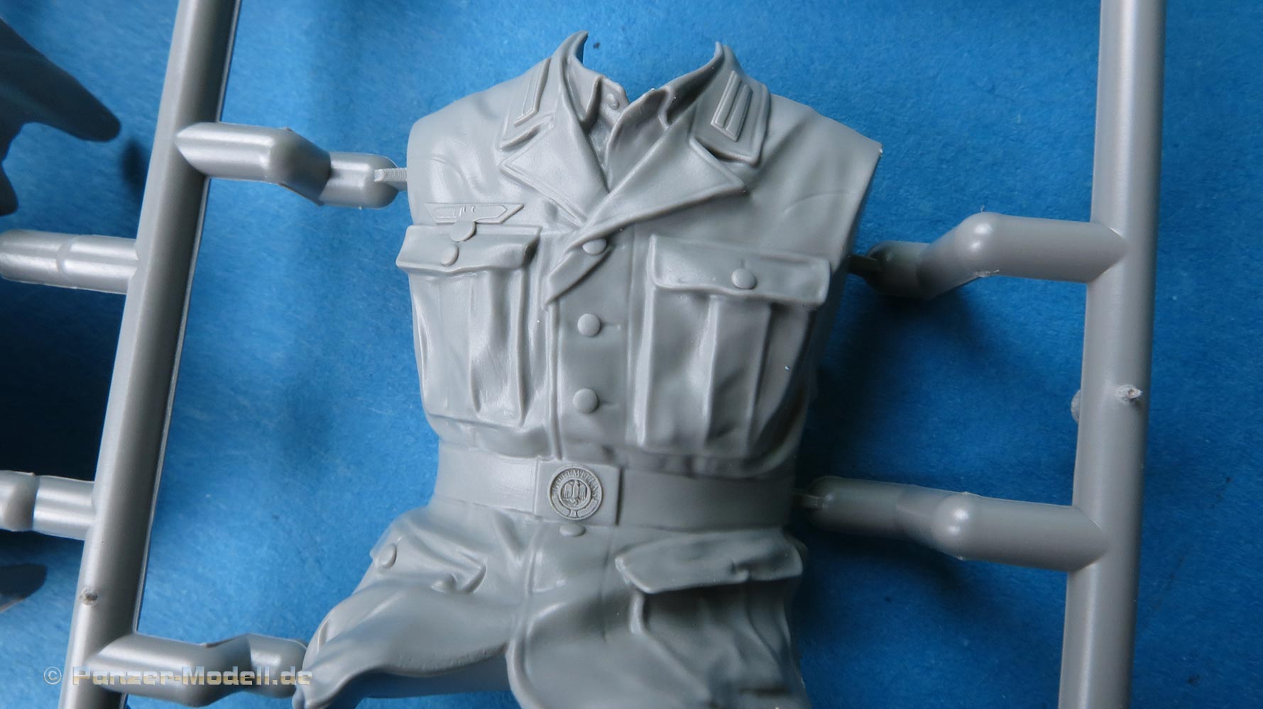 Zur Ausgestaltung des Innenraums hat Das Werk auch eine Fahrerfigur beigelegt. Diese setzt sich aus mehreren Teilen zusammen und erstaunlicherweise die Arme, Beine, Rumpf und Kopf aus je zwei Halbteilen. Davon ab ist die Gestaltung der Teile wirlich sehr gelungen mit feinen Details und realistischem Faltenwurf der Uniform. Auch das Gesicht ist dauber und fein modelliert.