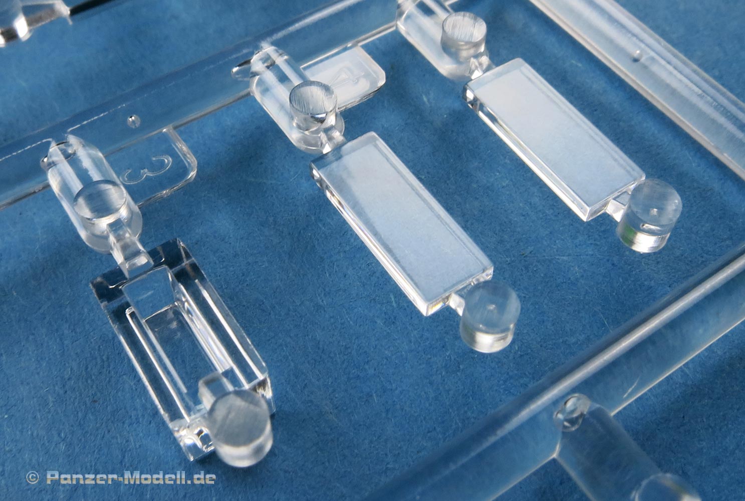 Die Spritzlinge sind durchweg einwandfrei, die Teile ohne Versatz oder Sinkstellen. Details sind gut herausgearbeitet. Die Klarsichtteile sind kristallklar, sowie kratzer- und schlierenfrei. Eine übersichtliche Anzahl an PE-Teilen hilft bei Detailverbesserungen.