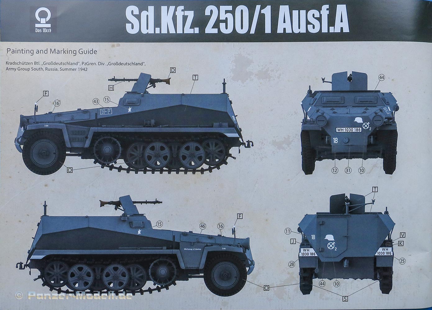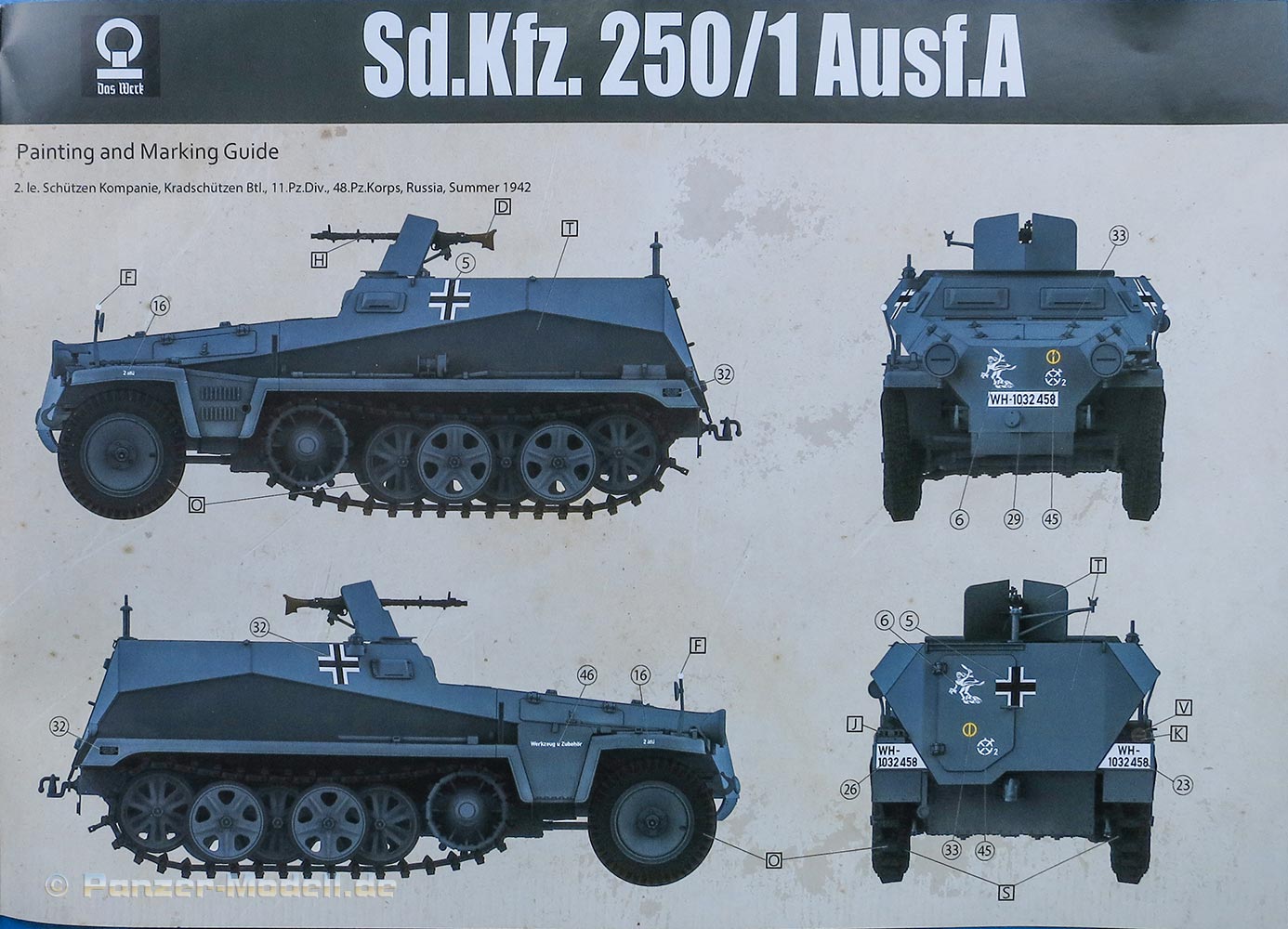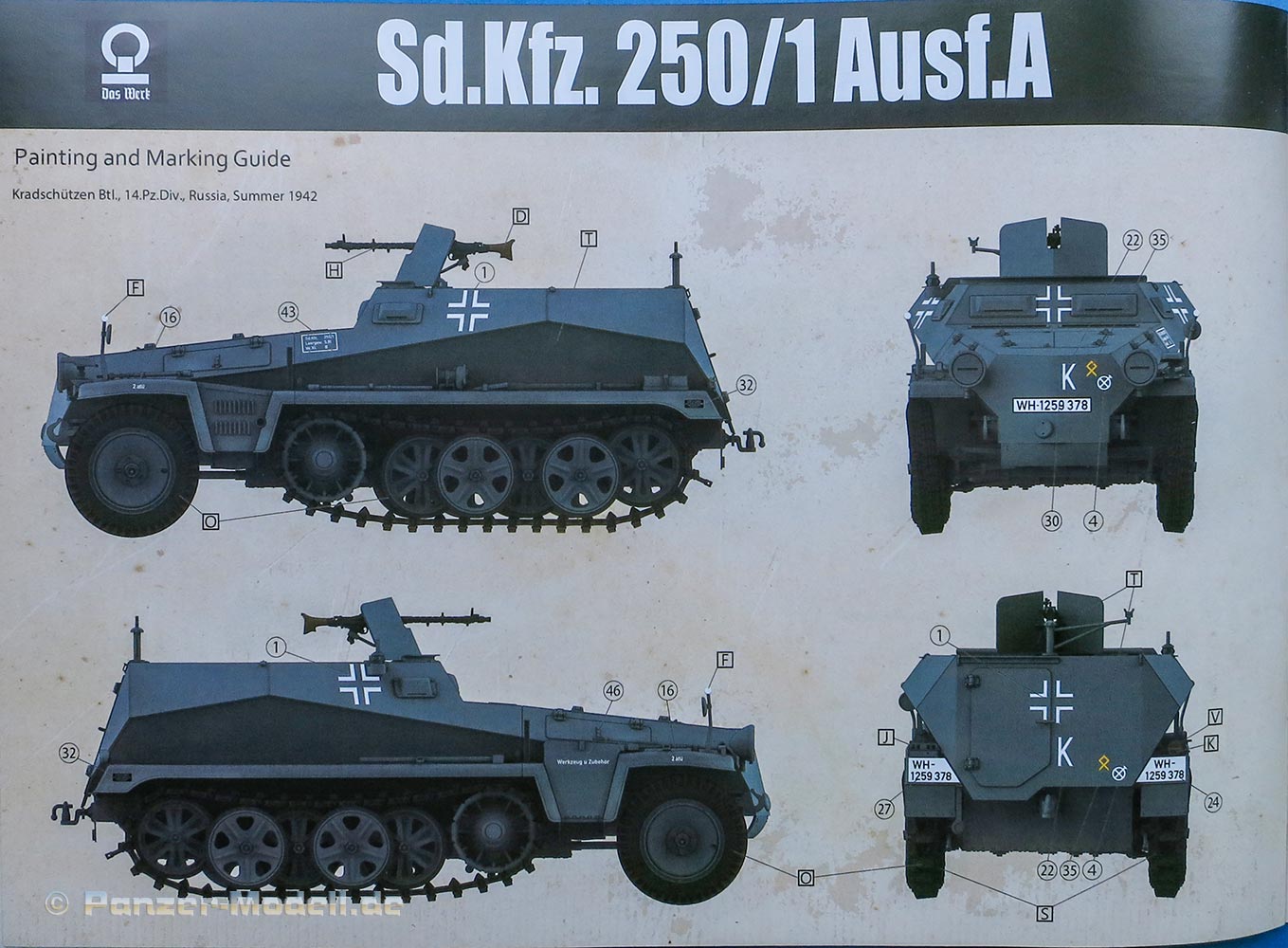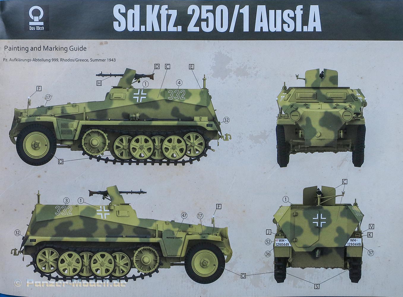 Nach dem bereits vorhandenen 251/1 von Das Werk folgt nun der kleinere Bruder, nämlich das Sd.Kfz.250/1 Ausf.A (die auch immer mal als "alte AUsführung" betitelt wird) .