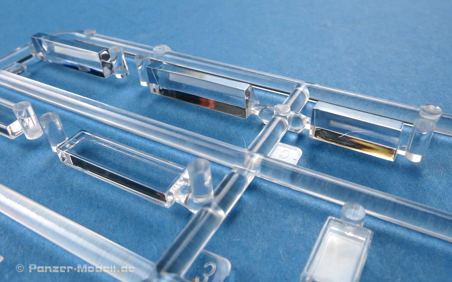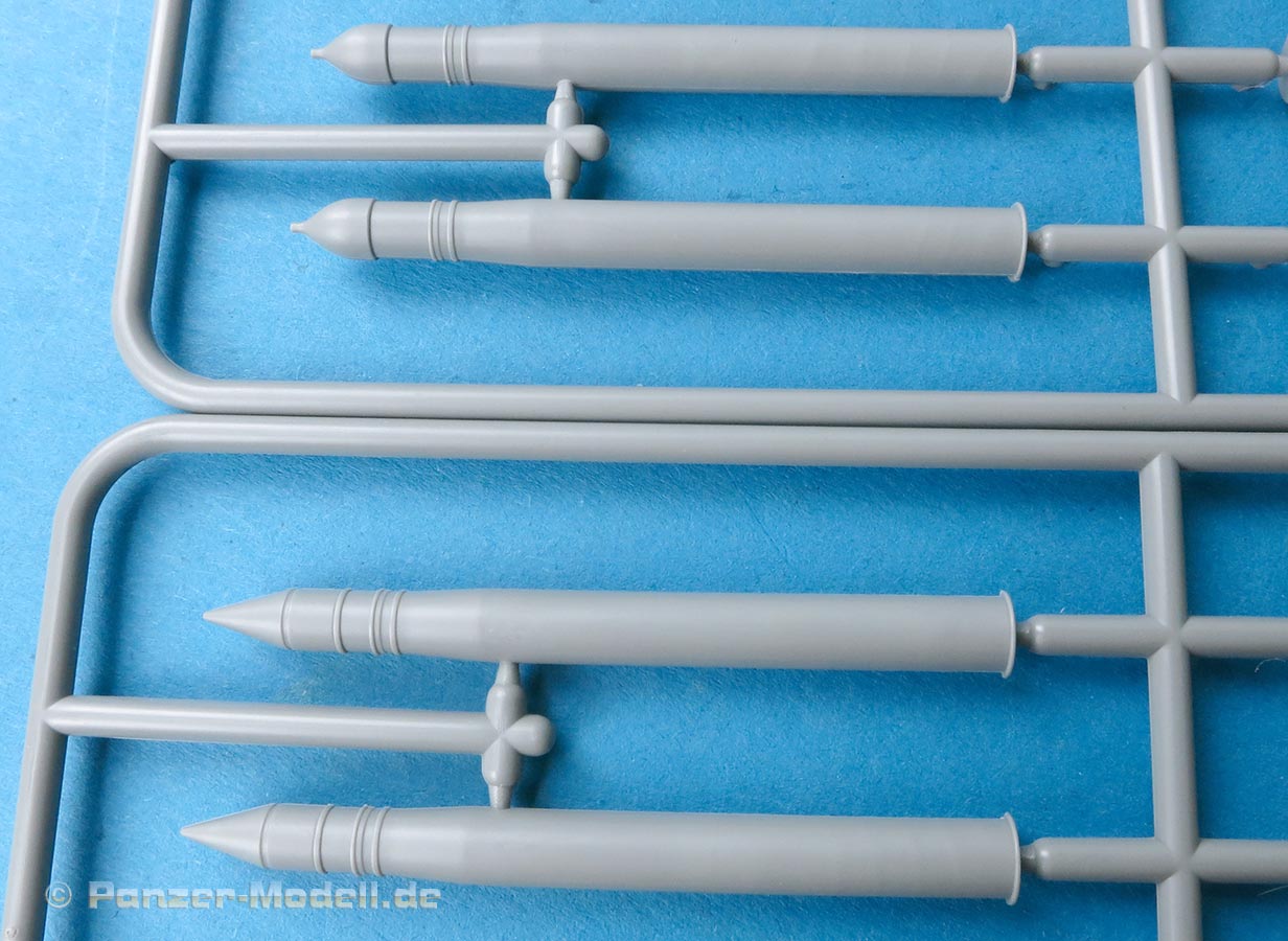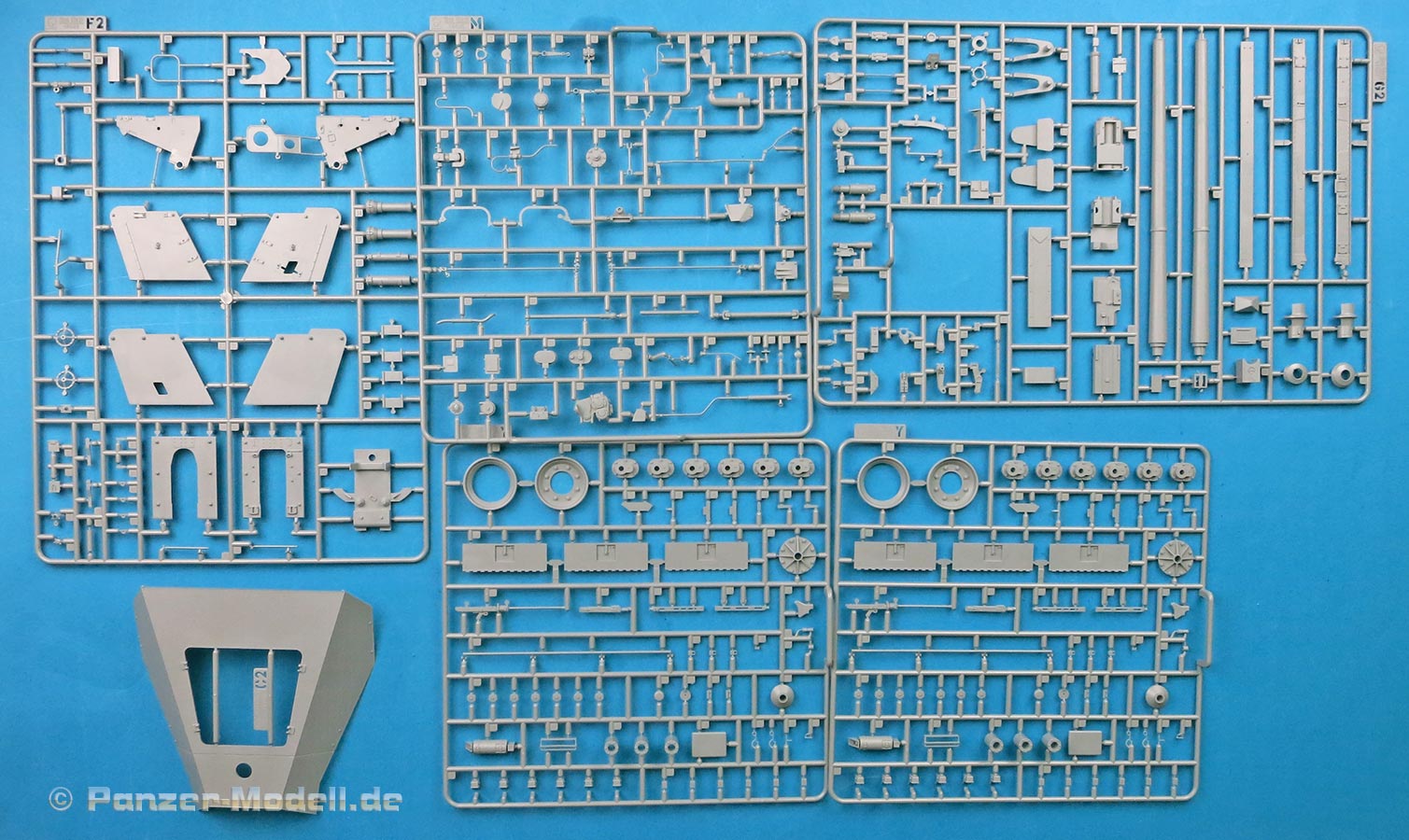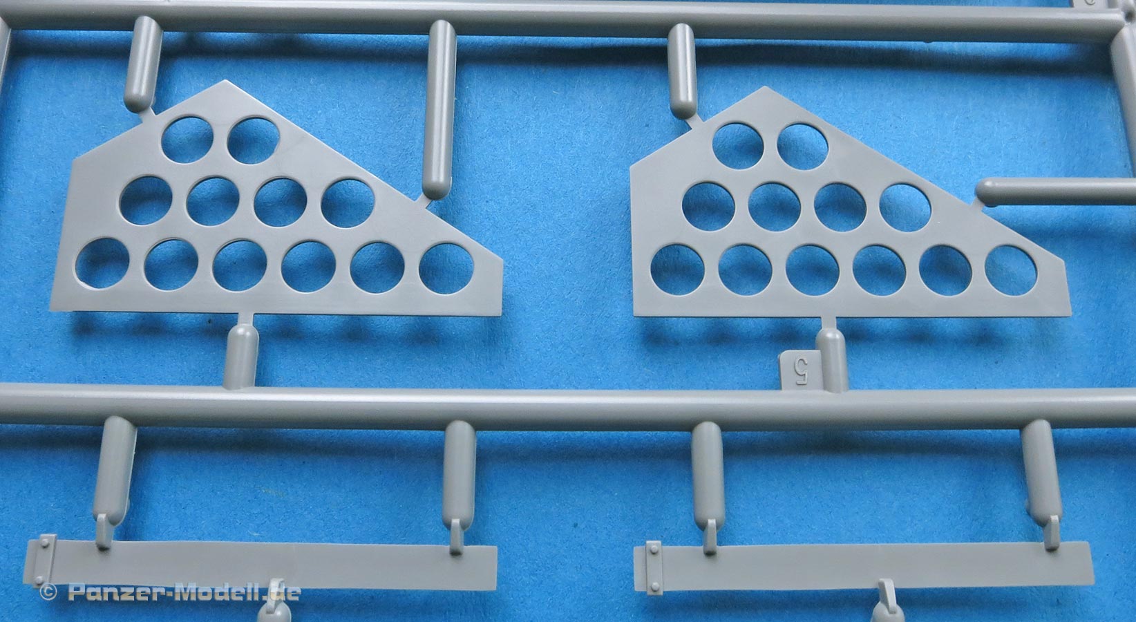 Die Spritzlinge sind einwandfrei, die Teile ohne Versatz oder Sinkstellen. Details sind gut herausgearbeitet. Die Klarsichtteile sind kristallklar, sowie kratzer- und schlierenfrei. Eine übersichtliche Anzahl an PE-Teilen hilft bei Detailverbesserungen der Granaten.