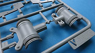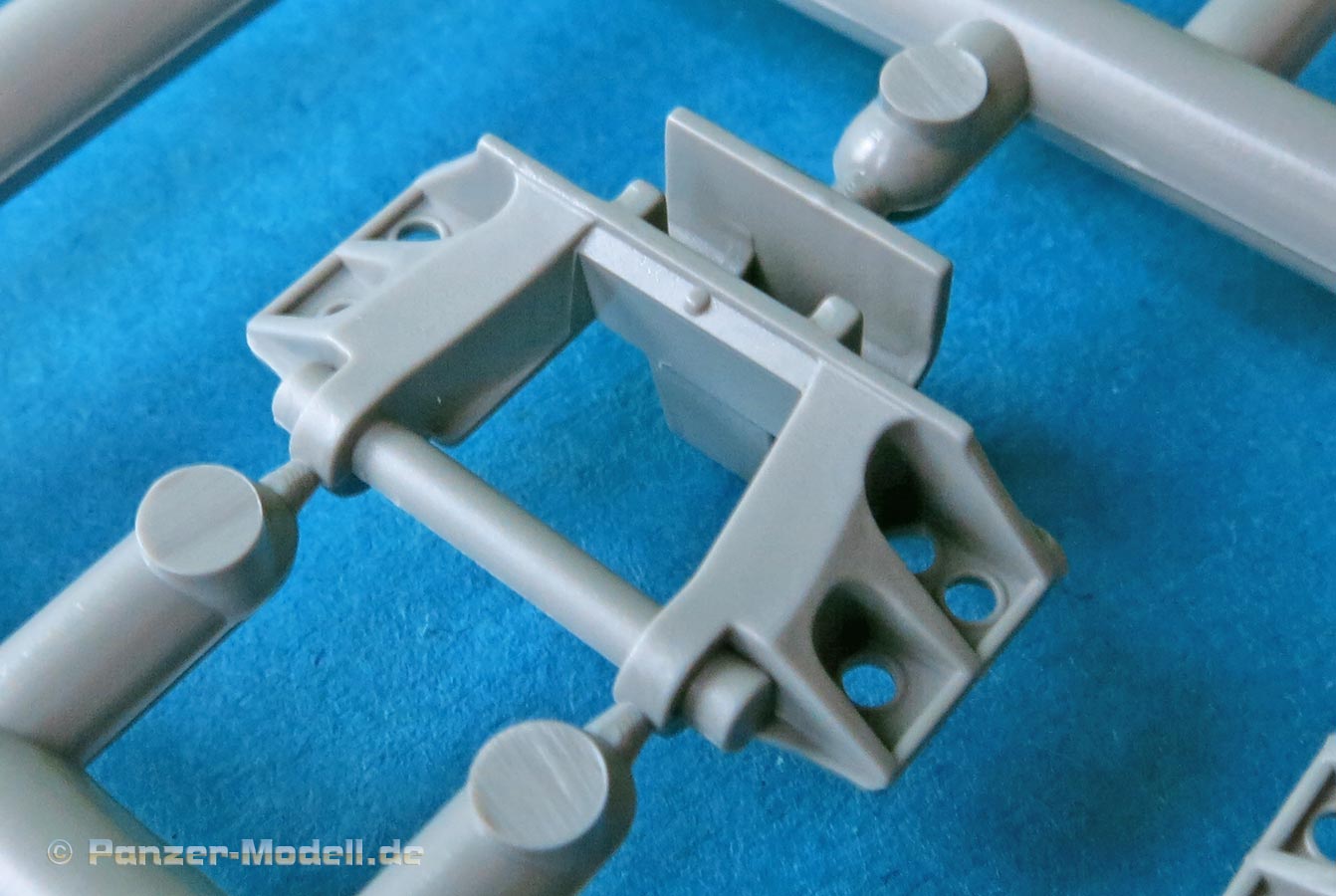 Die Schwingarme werden einzeln eingesteckt und wer diese pfiffig nur am inneren Ende verklebt, hat dann dementsprechend eine bewegliche Schwingarmfederung. Dabei sind die Schwingarme erfreulicherweise einteilig und sauber gespritzt.