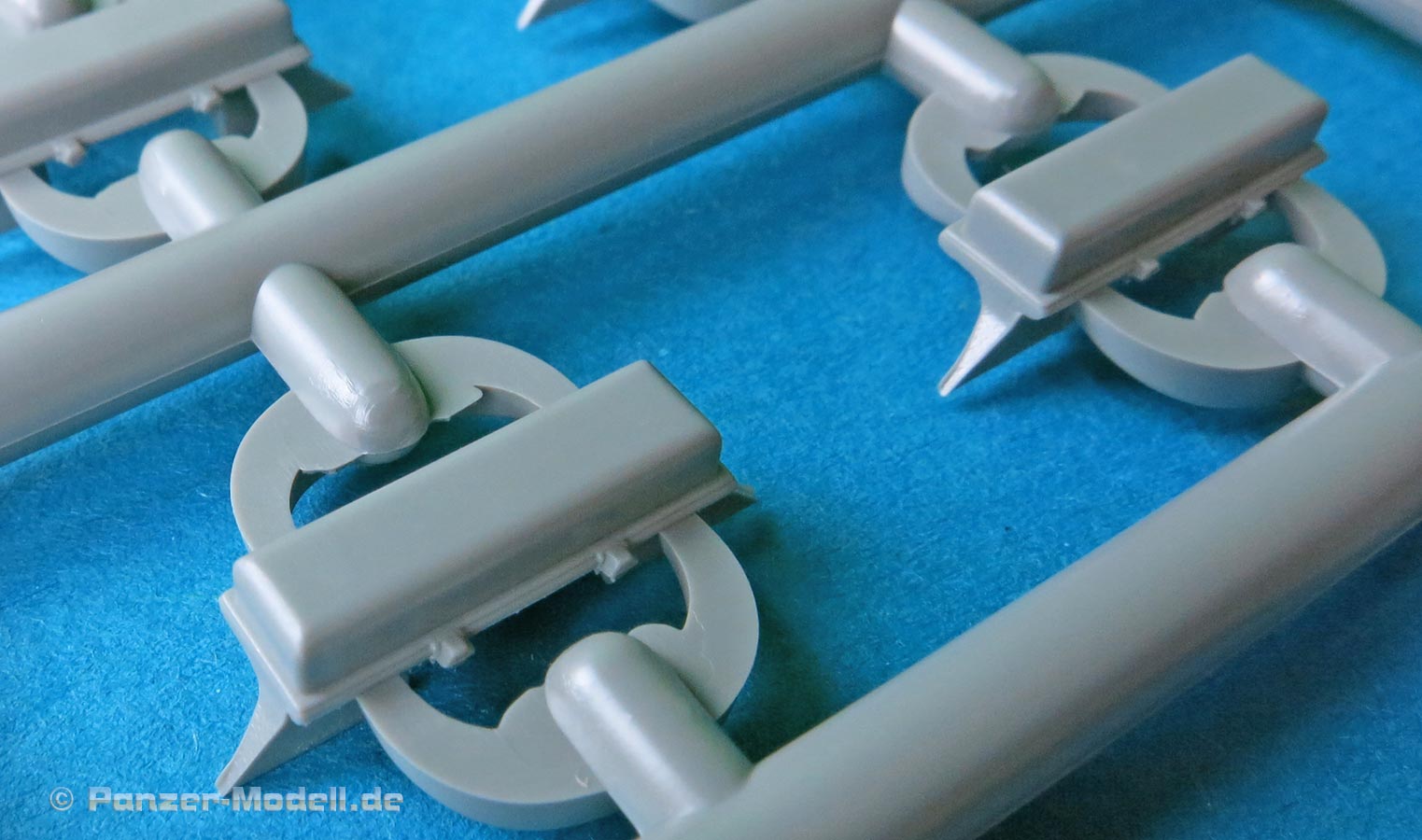 Ganz crazy wird es dann mit den Ketten, denn hier hat das Werk sich nicht lumpen lassen und ganze DREIÂ verschiedene Kettentypen zur Auswahl beigelegt. Diese unterscheiden sich zum einen im Kettenkörper an sich und darin nochmal wieder zwei verschiedene Polstertypen. Hier ist wahrlich für jeden was dabei und die Ketten sind vom Guss her wirklich gut, sauber und fein detailliert gemacht - keine Auswerfermarken oder Sinkstellen.