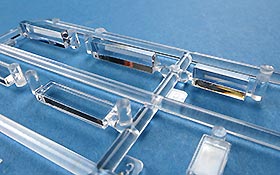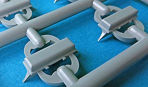 Die Glieder sind mit dem Kettenbolzen fest eingespritzt und um den wird das nächste Glied engehängt und mit dem Kettenpolster gesichert. Auf diese Weise bekommt man schnell und einfach eine bewegliche Kette.