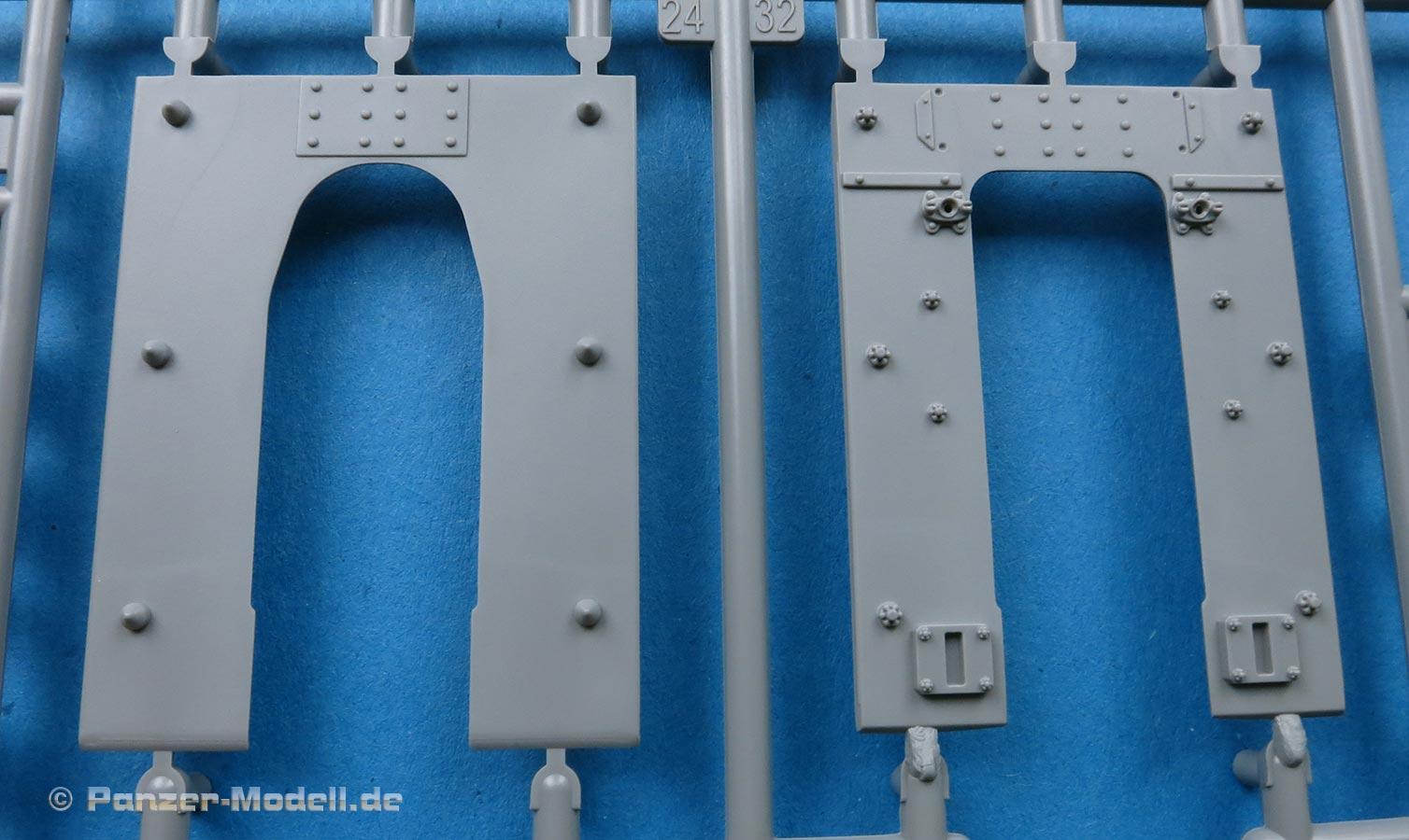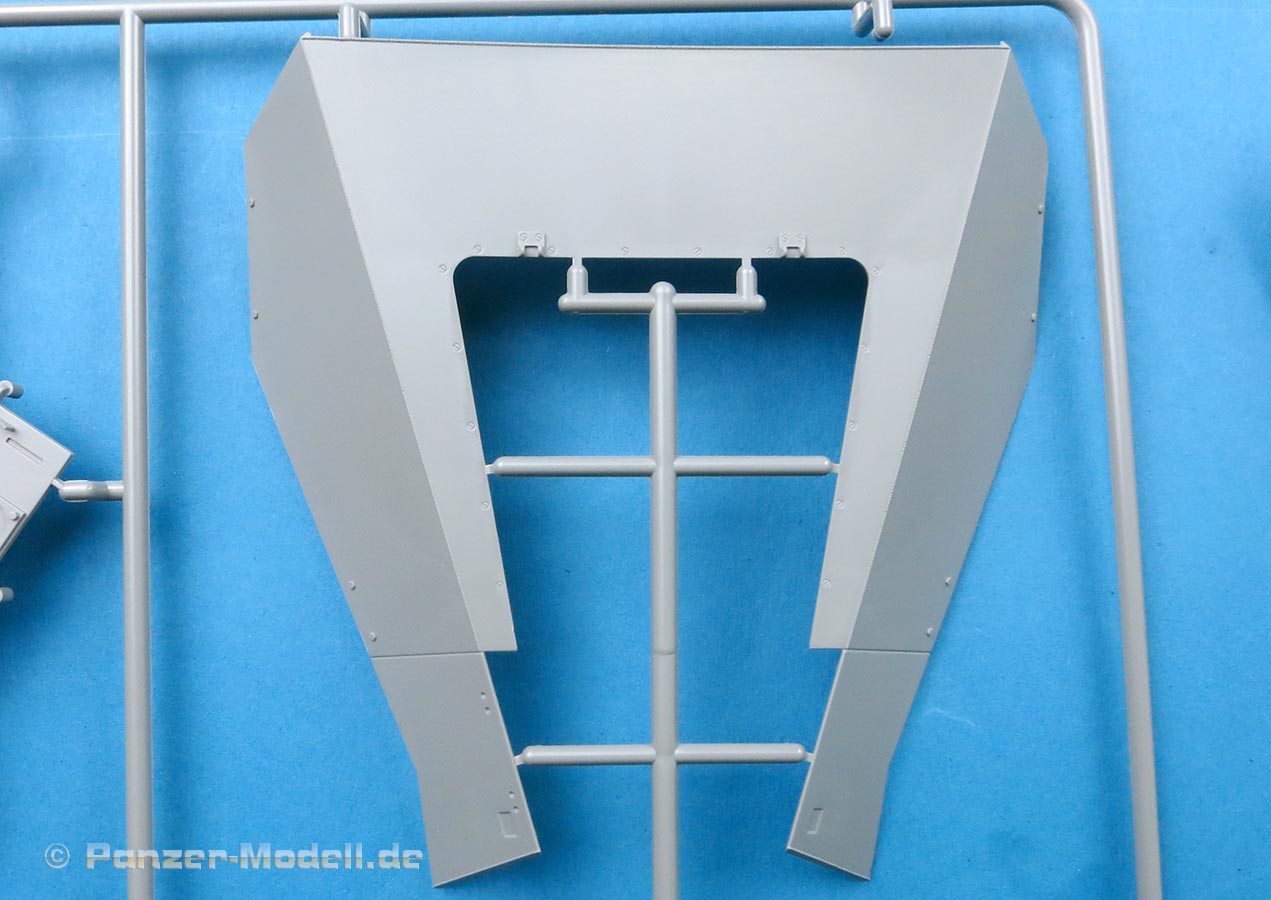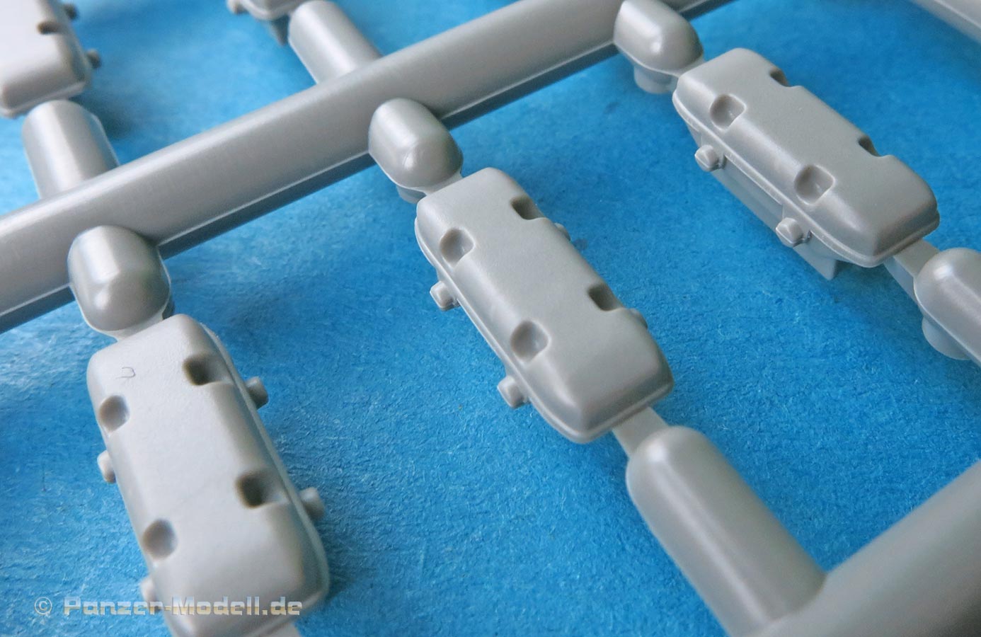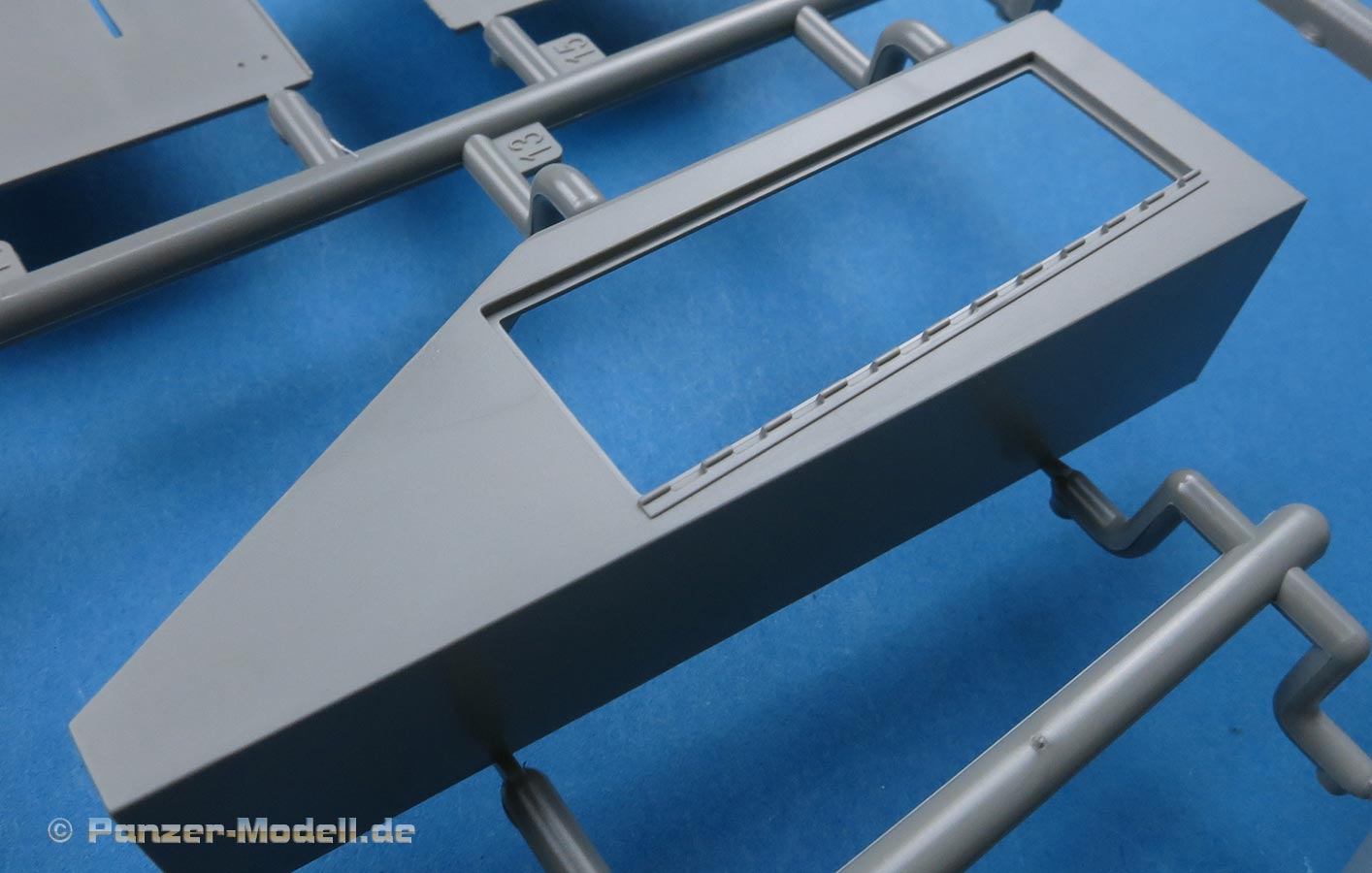 Die Pak an sich ist eine komplette Neuentwicklung und macht einen sehr guten Eindruck. Saubere Bauteile, keine störenden Auswerfermarken und nicht zu kleinteilig. Dabei sind alle wichtigen Features dargestellt, wie etwa die doppelwandigen Schilde, deren Schieber und Anbauteile und vor allem die markanten Ausschnitte der Schilde wie sie für die Nutzung auf den 251/22 nötig waren.