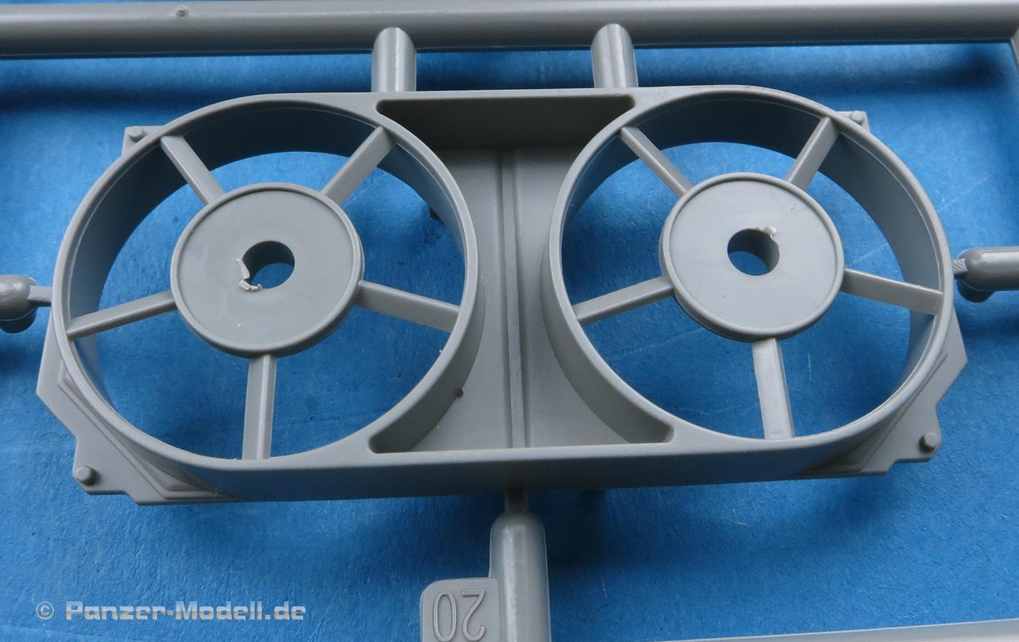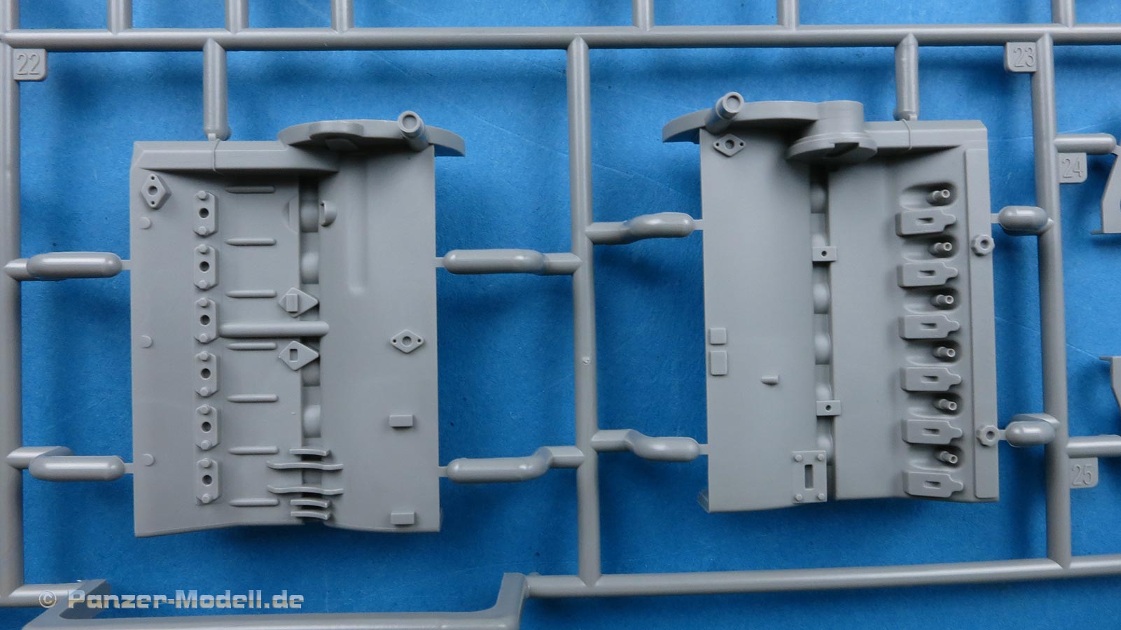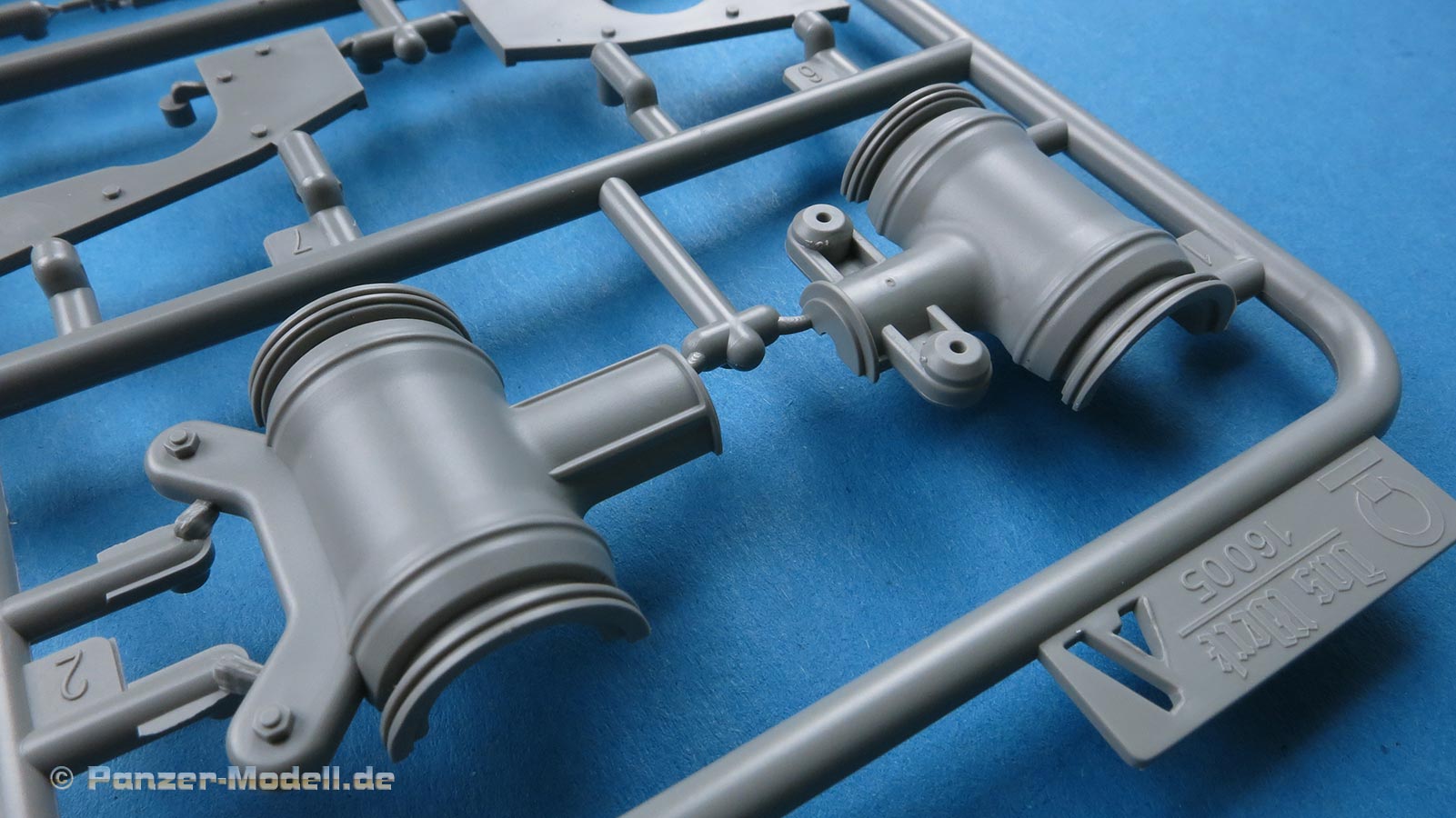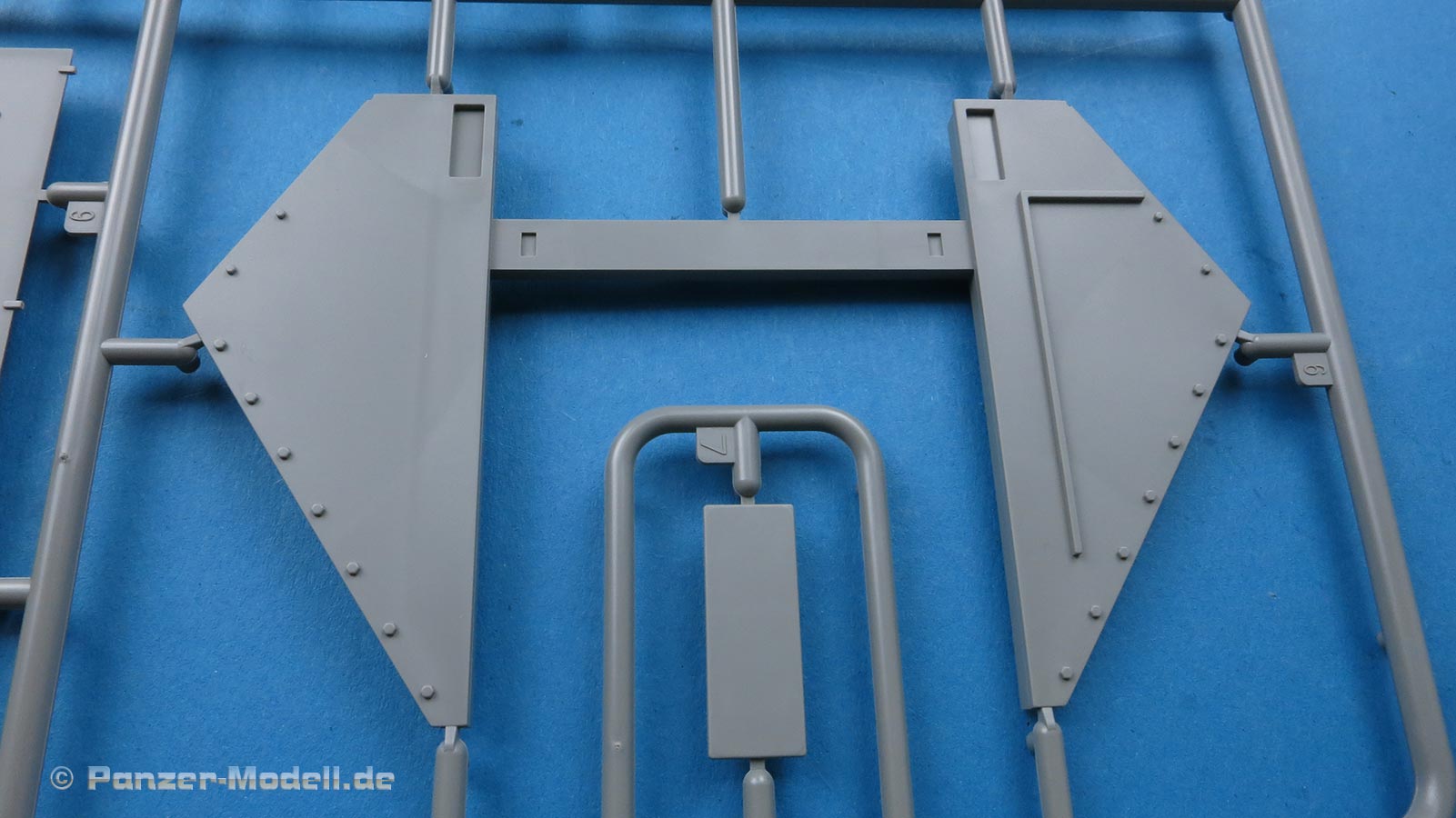Die Pak an sich ist eine komplette Neuentwicklung und macht einen sehr guten Eindruck. Saubere Bauteile, keine störenden Auswerfermarken und nicht zu kleinteilig. Dabei sind alle wichtigen Features dargestellt, wie etwa die doppelwandigen Schilde, deren Schieber und Anbauteile und vor allem die markanten Ausschnitte der Schilde wie sie für die Nutzung auf den 251/22 nötig waren.
