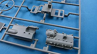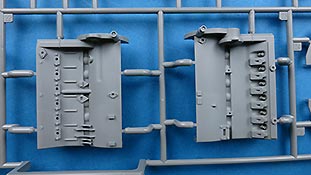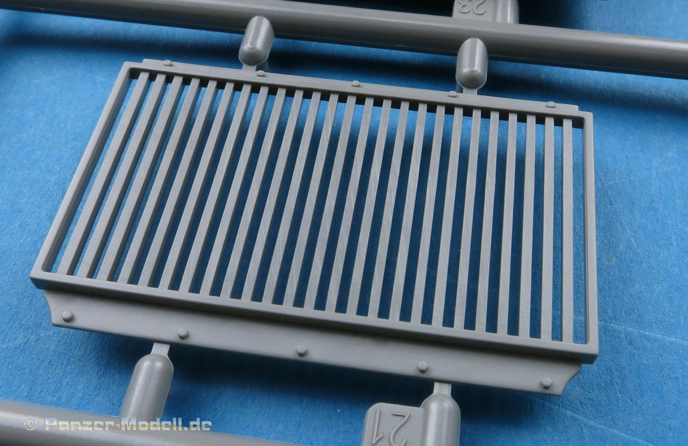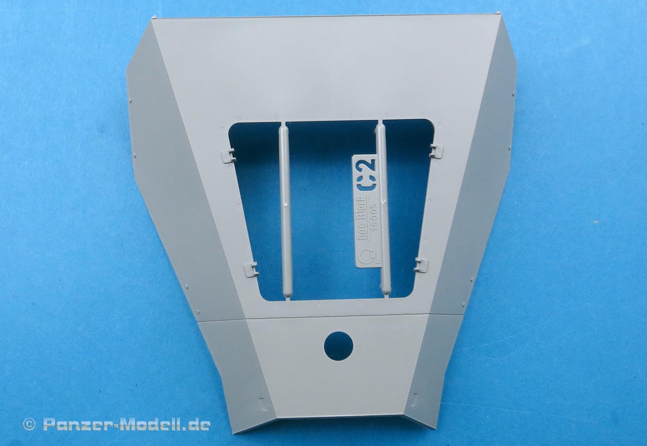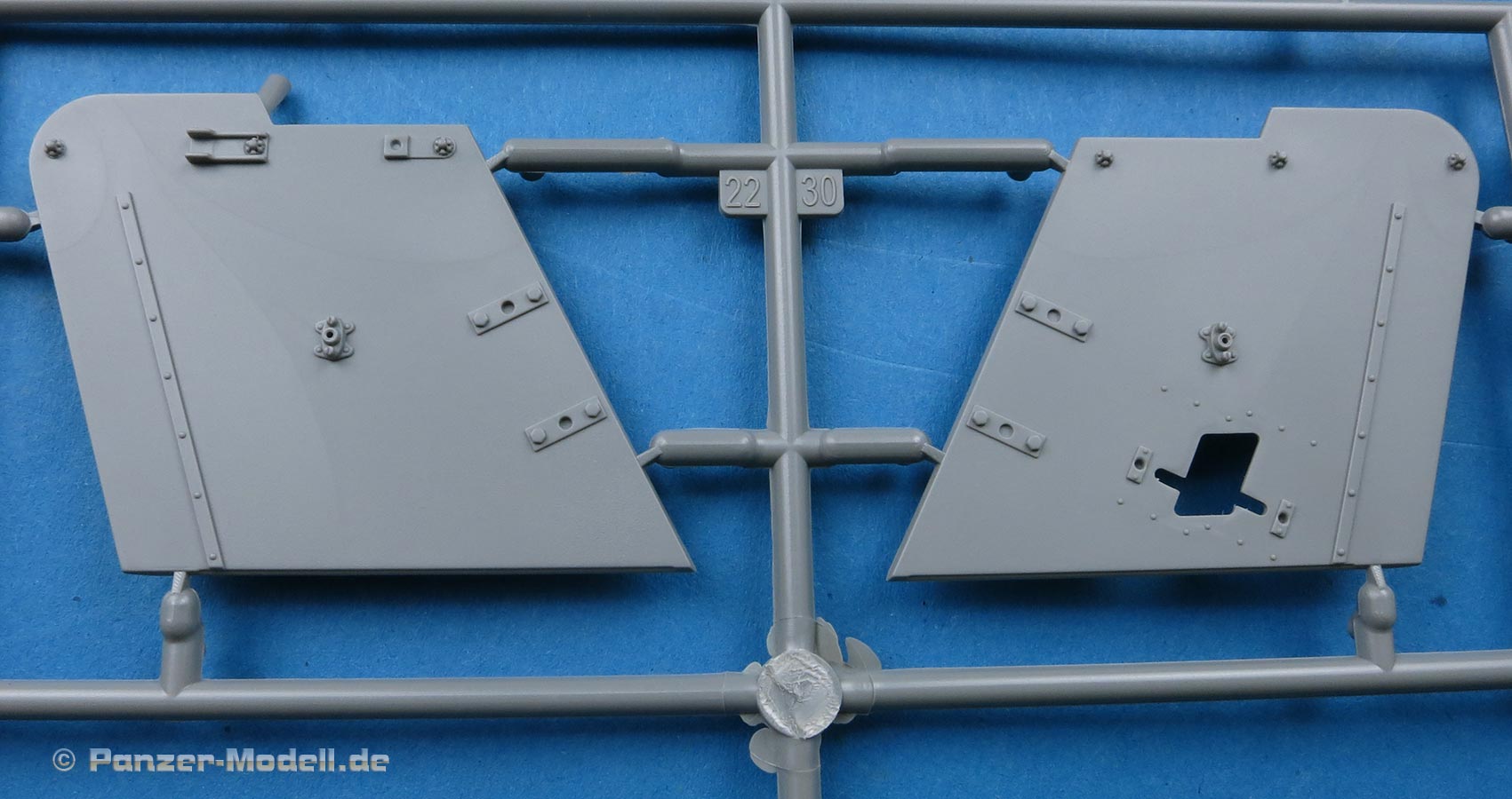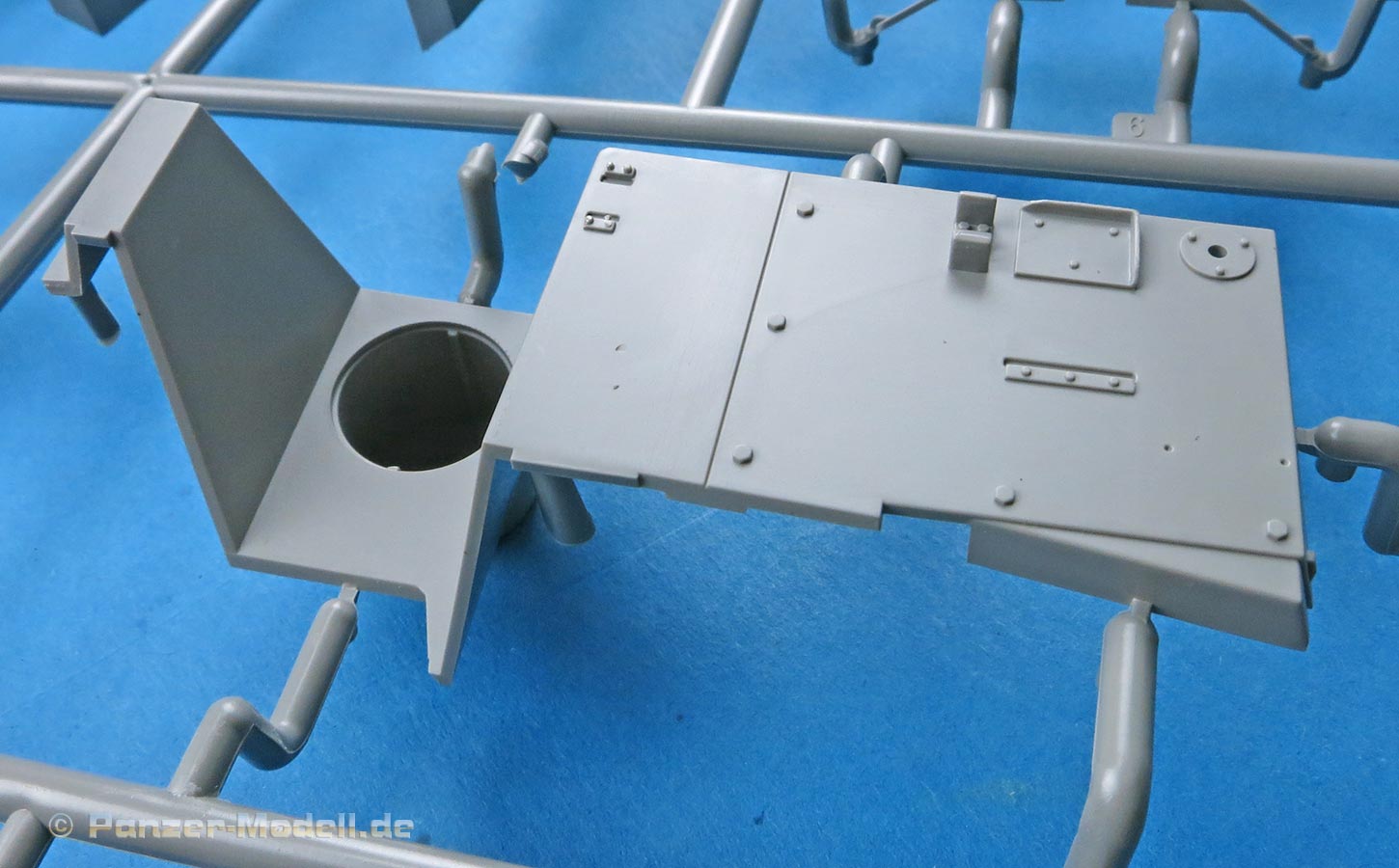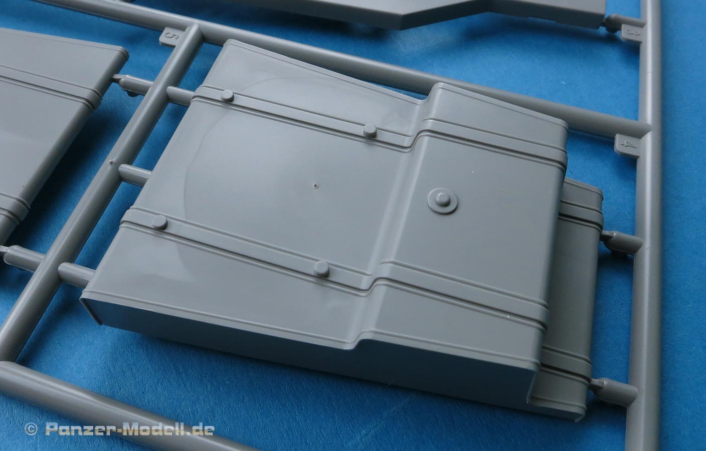 Für die Motorabdeckung liegen korrekterweise zwei verschiedene Versionen bei, denn während die frühe Version noch die zweiteiligen Luken hatte, hat die späte Version nur noch einen einteiligen Lukendeckel. Beides hat Das Werk hier vorbildlich berücksichtig.