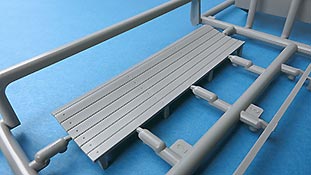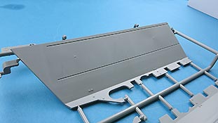 Auch die Oberwanne ist mehrteilig - und hier hat man fast das Gefühl, dass man ein Original zusammenbaut, denn die Plattenaufteiling ist wie beim echten 251er mit getrennten Platten für den hinteren Aufbau und den vorderen Bereich. Das bietet natürlich insofern Vorteile, als dass Änderungen der Oberwanne für andere Versionen im Modell leichter und kostengünstiger Uzusetzen sind - für den Modellbauer bedeutet es hingegen etwas mehr Arbeit. Aber da die Teile in 1:16 recht groß und gut handhabbar sind, sehe ich hier kein großes Problem.