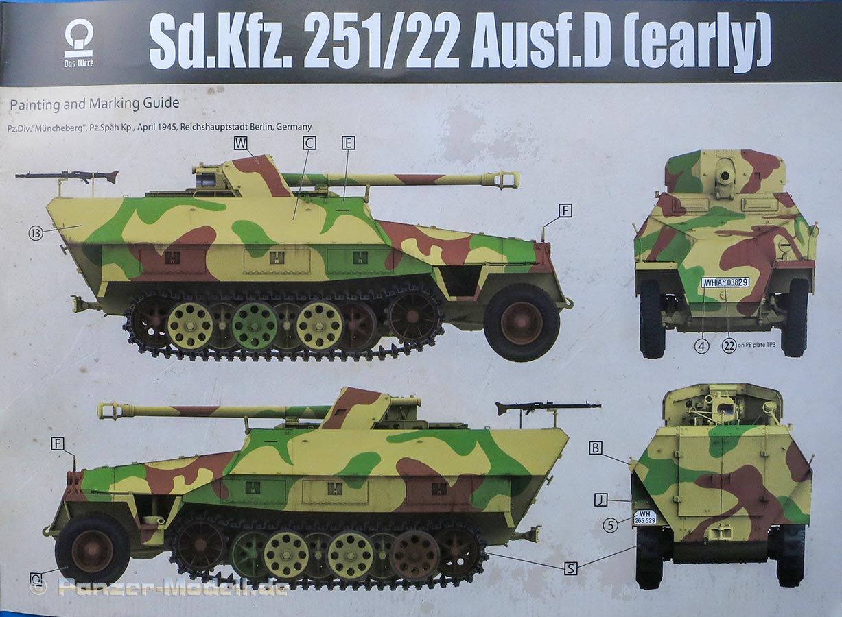 Nach dem bereits vorhandenen 251/1 von Das Werk folgt nun eine der spannendsten Version, das Sd.Kfz.251/22 und man kann schon von vorherein sagen, dass Das Werk hier nochmal eine Schippe draufgelegt hat, denn nicht nur wurden die vorhanden Teile noch verbessert und nachkorrigiert, sondern auch die neuen Teile für das /22 sind wirklich hervorragend gestaltet und die enthaltenen neuen Teile geben wirklich schöne Optionen her.