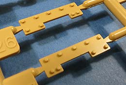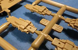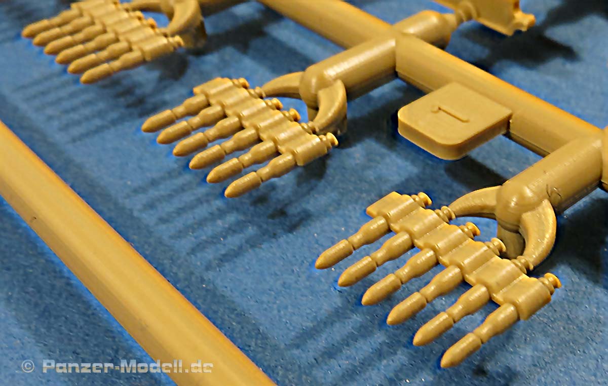 Auch die Waffenplatten auf denen jeweils 2 der Waffenkörper aufgebracht werden - diese sind schön sauber und detailliert gespritzt. Die Rohre sind aus Plastik und schön sauber und gerade.