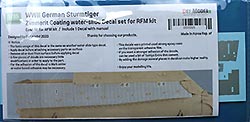 In diesem Blisterpack finden wir einen Decalbogen mit aufgedruckter Zimmeritstruktur für die entsprechenden Flächen eines Sturmtigers - gemacht für das Modell von Ryefield Model.