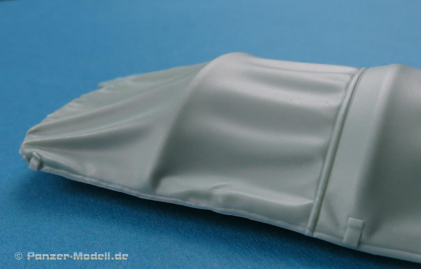 Der Guss und die Gestaltung der Plane sind ganz hervorragend mit der Struktur mit den Falten, Durchhang und durchdrückenden Spriegeln. Hier hat DEF wirklich gaze Arbeit geleistet und mit einer passenden Bemalung bekommt man hier eine grandiose Darstellung dieser Abdeckplane.