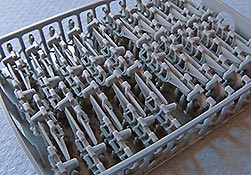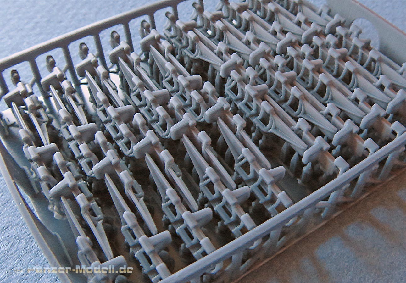 Da man für den Panzer III nur etwa 93 Glieder pro Seite braucht, hat man noch ein paar Glieder in Reserve falls beim Bau eines kaputt geht oder als Ersatzkettenglieder für das Modell.