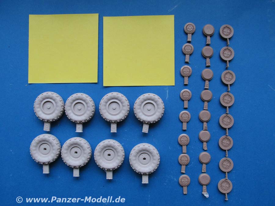 Diese beinhalten 8 Reifen für den Boxer sowie für jedes Rad drei verschiedene Radabdeckungen für verschiedene Rüststände inklusive natürlich des aktuellen Serienmodells.