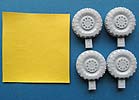 Natürlich hat DEF Model auch diesem Set gleich noch passende Lackierschablonen und eine farbig gedruckte Anleitung beigelegt. Die Lackierschablonen sind selbstklebend und zweiteilig, sodass man sich entscheiden kann ob man das Rad erst komplett Gummifarben lackiert und dann das Reifengummi abklebt für die Felgenlackierung oder andersrum.
