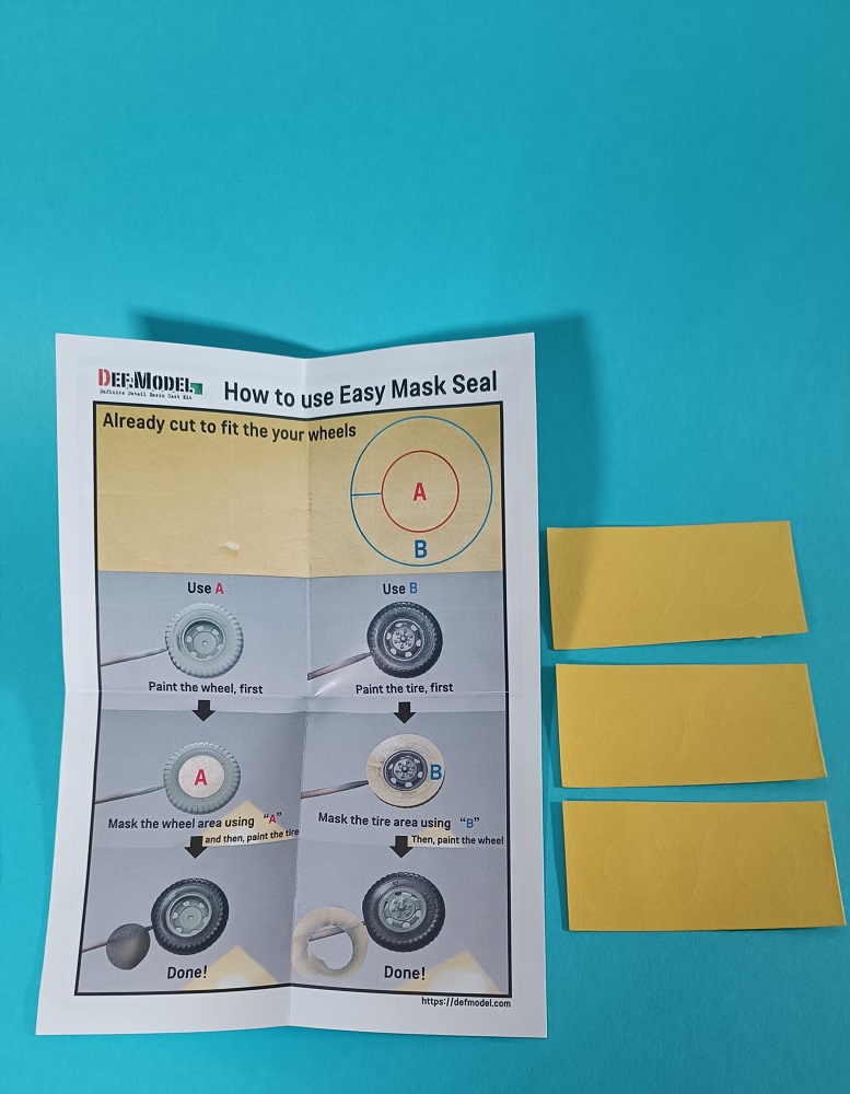 Von DEF MODEL erhielten wir mit der Art. Nr. DW35152 das Set „US M1151 HMMWV MT/R Sagged Wheel Set”. Das Set enthält einen kompletten Satz Resinräder inklusive Reserverad sowie die entsprechenden Maskierfolien und eine bebilderte Anleitung für die Maskierung und Bemalung der Räder. Ausgelegt ist das Räderset für das HMMWV-Modell von Academy.