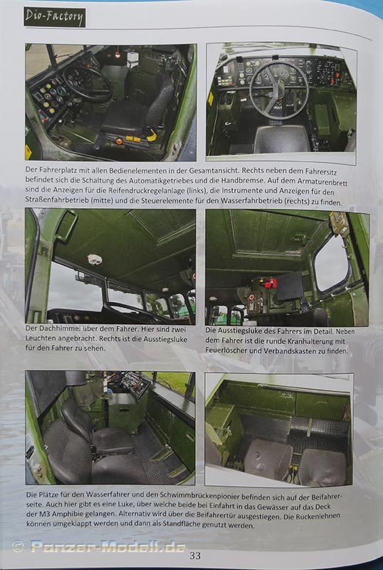 Dann geht es ans Eingemachte, denn auf 22 Seiten gibt es dann reichlich Fotos in Nahaufnahmen sämtlicher Bereiche und Komponenten - ob nun die Beleuchtungsanlage, die Schwimmkörper, das Wasserfahrtpult, der Kran oder der Fahrerinnenraum - alles wird in gut erkennbaren Fotos gezeihgt - sogar der offene Motorraum und die Pumpjetdüsen am Wannenboden werden hier gezeigt und mit entsprechenden Bildunterschriften erklärt, damit man immer weiß wo am Fahrzeug man nun gerade ist.