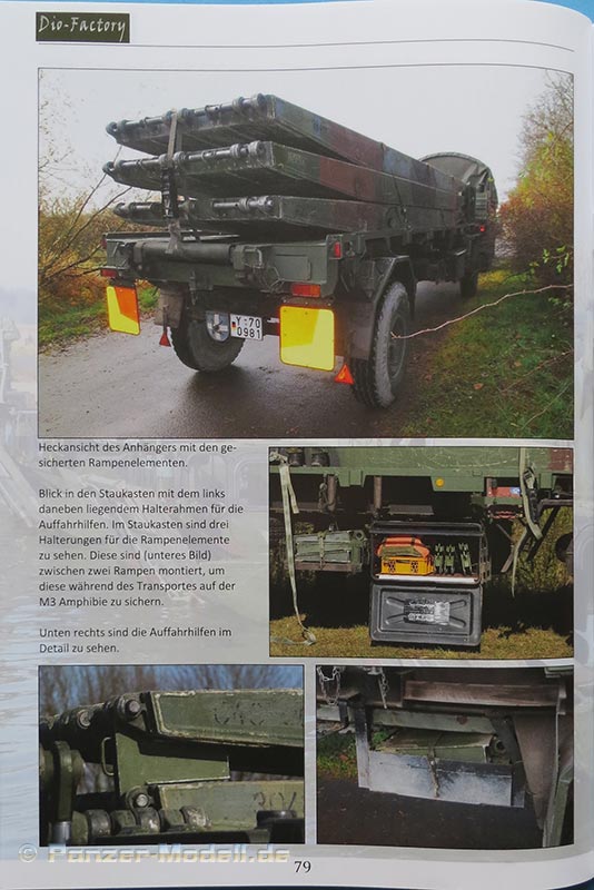 Die letzten 5 Seiten des Hefts zeigen den begleitenden MAN 7t LKW mit Aufbaugerätesatz und Anhänger welcher mit Rampenelementen beladen wird. Ausserdem ganz zum Schluss noch zwei Fotos einer auf Bahn verlasteten M3 Amphibie - ein Anblick den man als Normalsterblicher selten zu Gesicht bekommt.