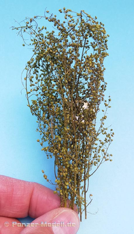 Dieser italienische Hersteller bietet ein umfangreiches Angebot für den Krippen- und Dioramenbau an. Die Vielzahl an Bäumen, Büschen oder Gräsern ist beeindruckend. Es werden hauptsächlich Naturprodukte verwendet und diese hinterlassen einen realistischen Eindruck. Im Angebot finden sich sowohl fertige Produkte als auch Basismaterial, dass z.B. mit Sprühkleber selbst zusammengestellt werden muss. Insbesondere die hier vorgestellten Produkte lassen sich gut mit anderen Büschen etc. kombinieren. In der Box befinden sich mehrere ca. 10cm hohe Sträucher, die beliebig zusammengestellt werden können. Das Material wird in einer stabilen, transparenten Box geliefert. An einem zentralen Stamm befinden sich kleinere Äste mit einem grünlich, beigen Blattwerk, das flexibel und grifffest ist. Das Produkt macht einen realistischen Eindruck und ist sehr zu empfehlen. Eine genaue botanische Zuordnung des Busches ist mir leider nicht möglich. Und hier kann wer mag direkt einen Blick wagen