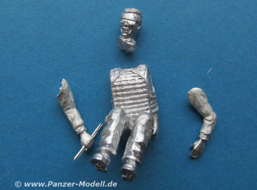 Arme und Kopf müssen einzeln an die Figur geklebt werden. Der Faltenwurf der Uniform ist recht realistisch modelliert und wiedergegeben, wobei wieder die Schutzweste durch ihre relativ gerade Flächen sehr steif wirkt.