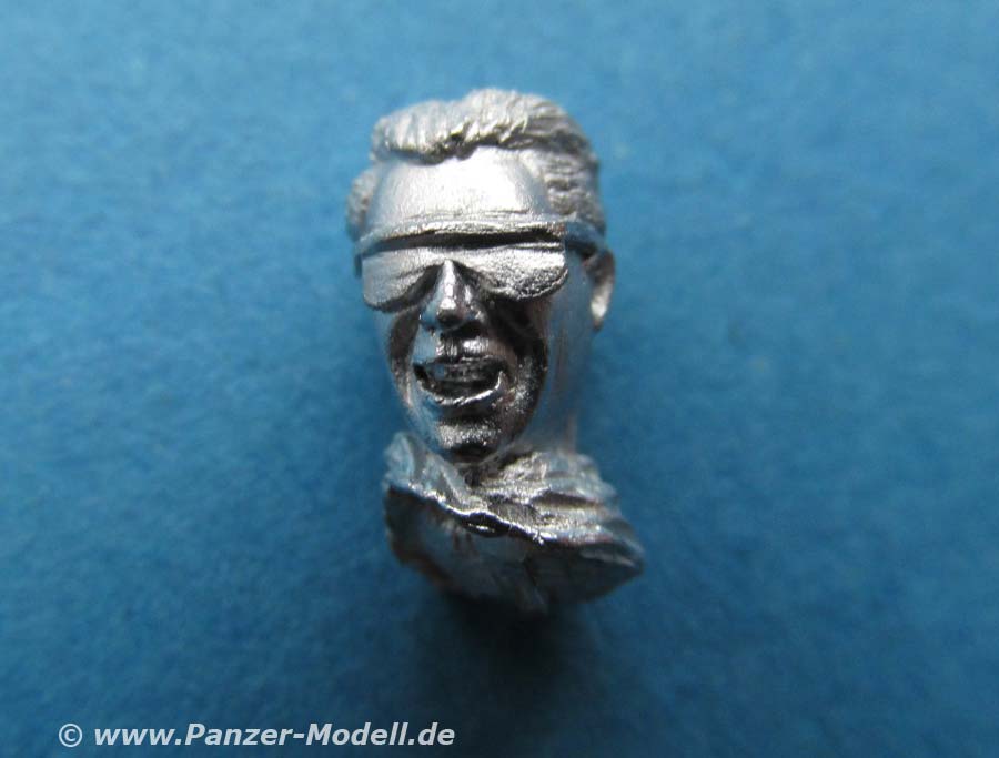 Der Kopf ist recht ansehnlich. Auch die Mimik des Gesichts mit den Details des offenen Munds und der Schutzbrille sind für Metallguss wirklich beachtlich gut gemacht.