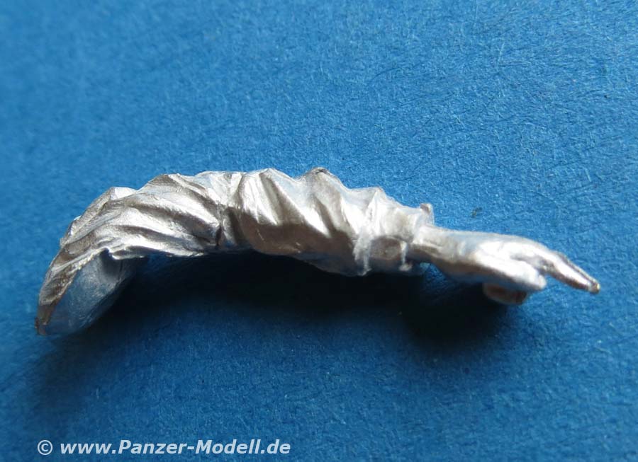 Arme und Kopfmüssen einzeln an die Figur geklebt werden. Der rechte Arm ist mit der hand gleich an ein Bedienelement der FLW mit Joystick mit angegossen. Der Faltenwurf der Uniform ist schön und realistisch modelliert und wiedergegeben.