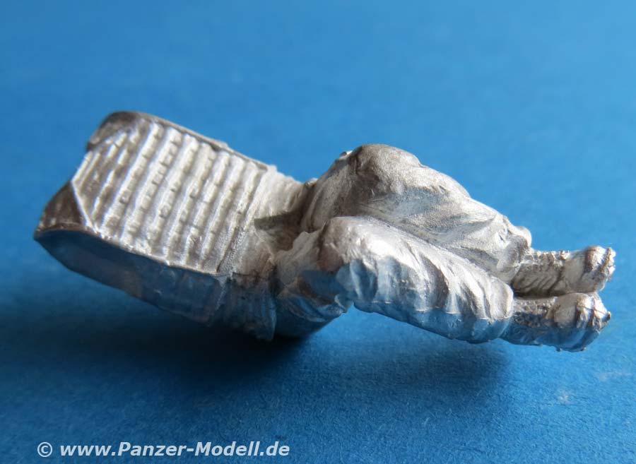 Die Position der Figur ist sitzend mit angewinkelten beinen und passt so direkt in den Bausatz des Eagle IV von Y-Modelle.