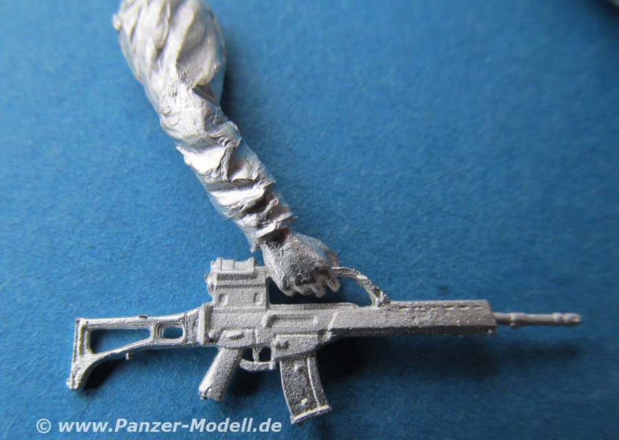 Am hängenden rechten Arm ist ein G36 vereits mit angegossen, das sich sehen lassen kann.
