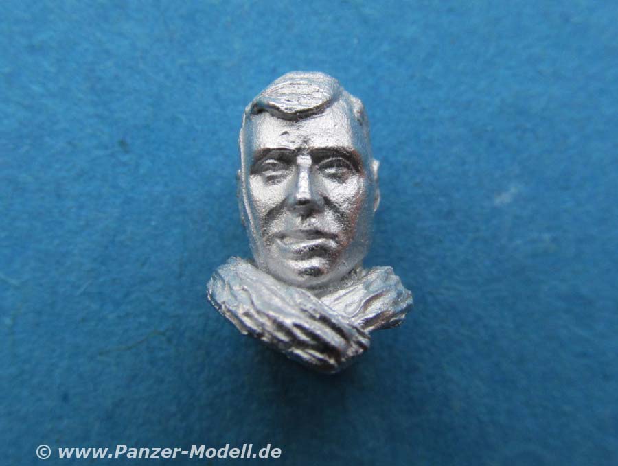 Der Kopf ist wirklich schön gemacht mit der Frisur, der Mimik des Gesichts mit den Details sowie das Halstuch mit seinen Falten sind für Metallguss wirklich beachtlich gut gemacht.