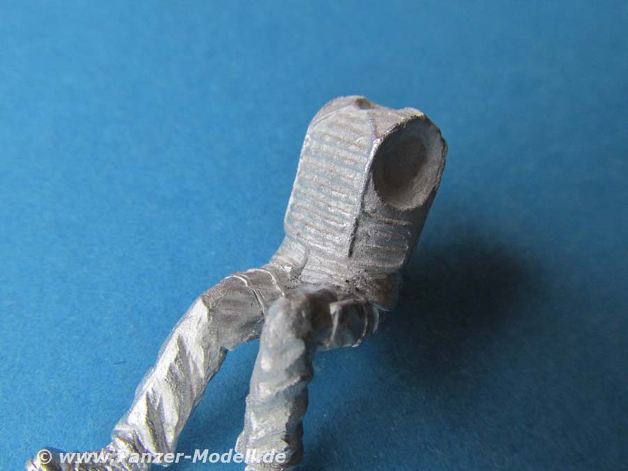 Auch diese Figur ist wie sonst in Metall gegossen und wirklich schön dargestellt. Die Details der Uniform mit Schutzweste und auch der Kopf ohne Kopfbedeckung sind für Metallguss gut wiedergegeben, auch wenn bei extremer Nahbetrachtung die raue Oberfläche auffällt und am Kopf rechts eine kleine Naht sichtbar ist, die sich aber eigentlich schnell entfernen lassen müsste.