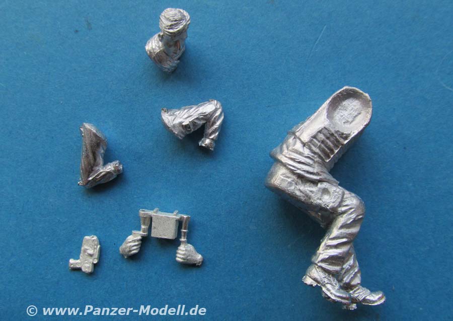 Arme und Kopf müssen einzeln an die Figur geklebt werden. Der Faltenwurf der Uniform ist schön und realistisch modelliert und wiedergegeben, auch wenn die Schutzweste wie immer mit ihrem boxartigen aussehen etwas steif wirkt.