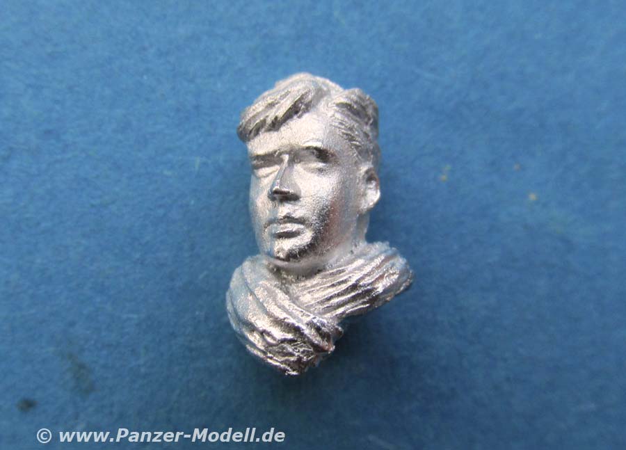 Der Kopf ist wirklich schön gemacht mit der Frisur, der Mimik des Gesichts mit den Details sowie das Halstuch mit seinen Falten sind für Metallguss wirklich beachtlich gut gemacht.