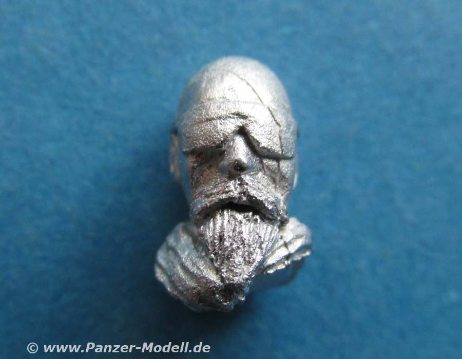 Der Kopf ist wirklich schön gemacht mit dem Bart, der Brille, mit den Details sowie das Halstuch mit seinen Falten sind für Metallguss wirklich beachtlich gut gemacht.
