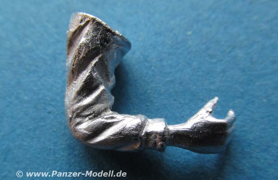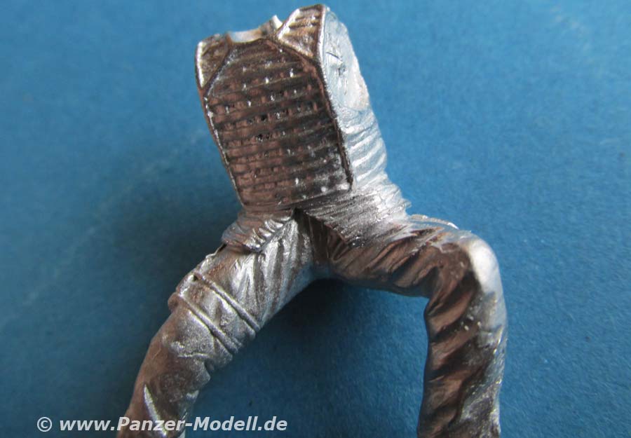 Auch diese Figur ist wie sonst in Metall gegossen und wirklich schön dargestellt. Die Details der Uniform mit Schutzweste und auch der Kopf ohne Kopfbedeckung sind für Metallguss gut wiedergegeben, auch wenn bei extremer Nahbetrachtung die raue Oberfläche auffällt und am Kopf links eine kleine Naht sichtbar ist, die sich aber eigentlich schnell entfernen lassen müsste.
