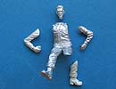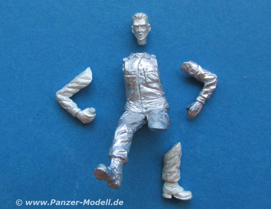 Arme und Kopf müssen einzeln an die Figur geklebt werden, wie auch ein Teil des linken Beins um den besonderen Winkel des Beins darstellen zu können. Der Faltenwurf der Uniform ist schön und realistisch modelliert und wiedergegeben.