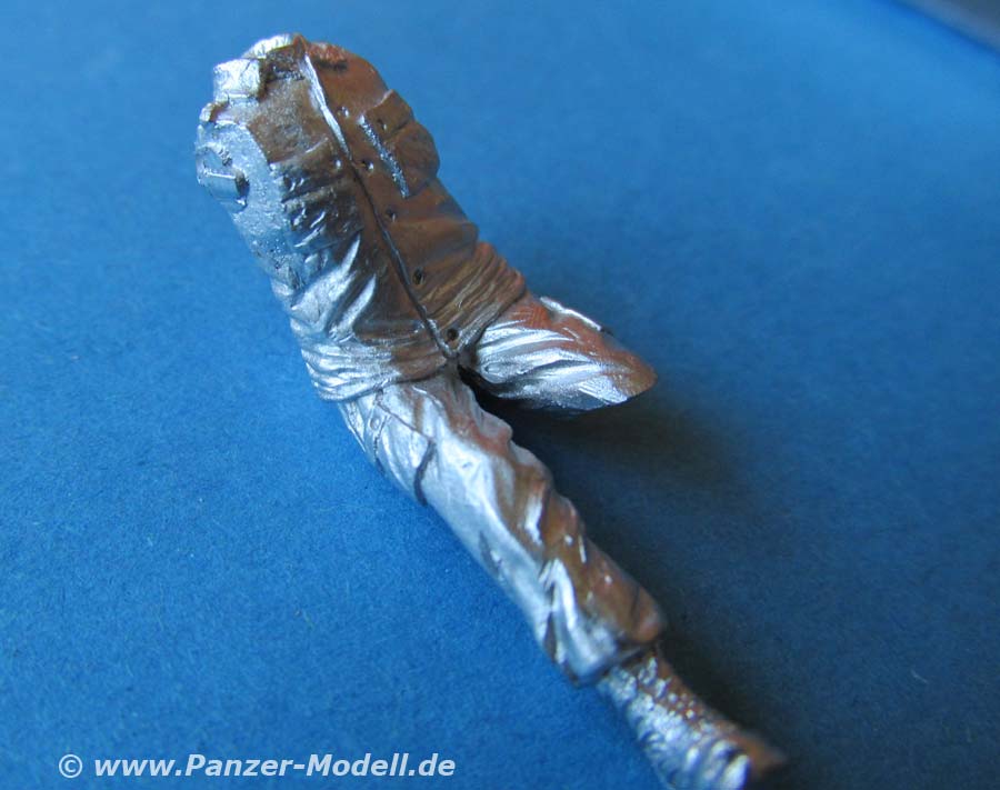 Der Kopf ist ohne Kopfbedeckung wirklich schön gemacht, die Details des Gesichts mit m offenen Mund sind für Metallguss wirklich beachtlich gut gemacht.