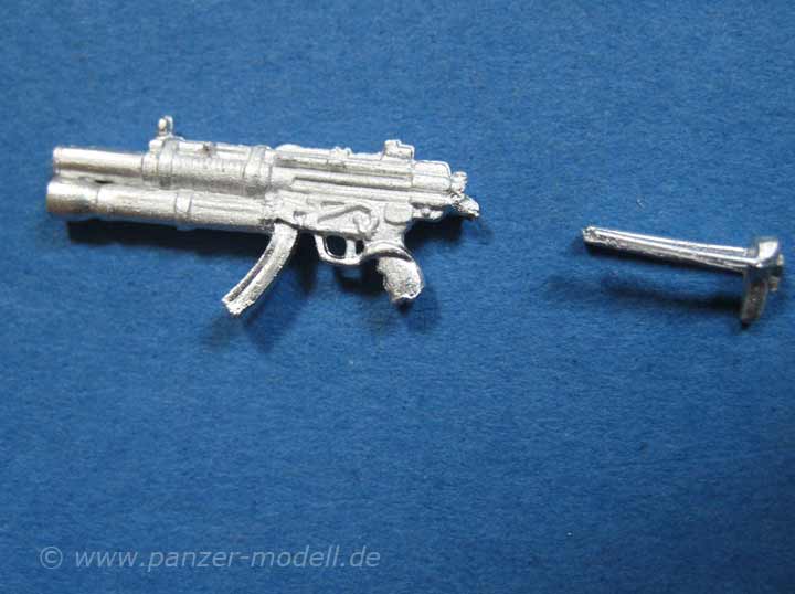 Dieses Set beinhaltet eine stehende Figur, bestehend aus 4 Teilen. Neben den beiden separaten Armen ist auch der Kopf mit Mütze und ein Gewehr als Einzelteil beigelegt. Das Gewehr ist fein detailiert mit Anbauteilen dargestellt. Kleidung und Faltenwurf sind gut gelungen. Der Kopf trägt ein Barett und eine Brille/Sonnenbrille, was ich für eine hervorragende Idee halte.