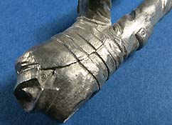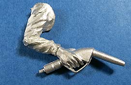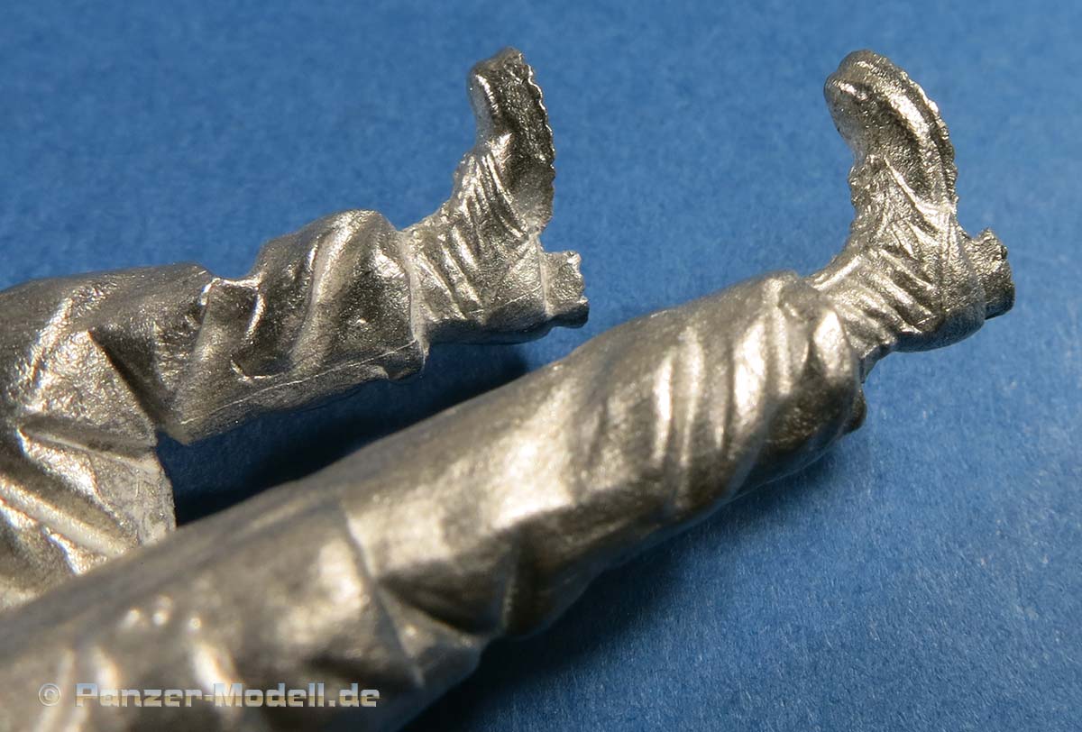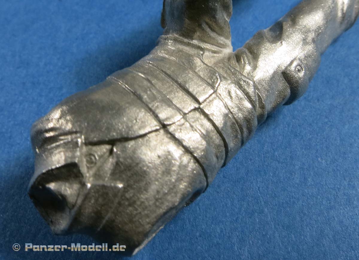 Arme und Hände sind gut und recht fein gestaltet mit entsprechendem Faltenwurf an den Ärmeln und relativ feingliedrigen Fingern. Die rechte Hand hat, wie bereits erwähnt, bereits dden Tankstutzen mit angegossen - auf diese Weise liegt dieser perfekt in der Hand.