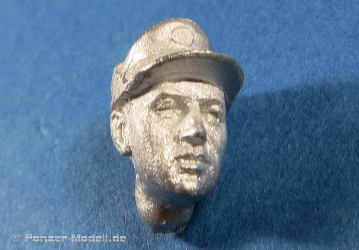 Der Kopf ist gut gemacht mit realistischen Gesichtszügen und Feldmütze auf dem Kopf.